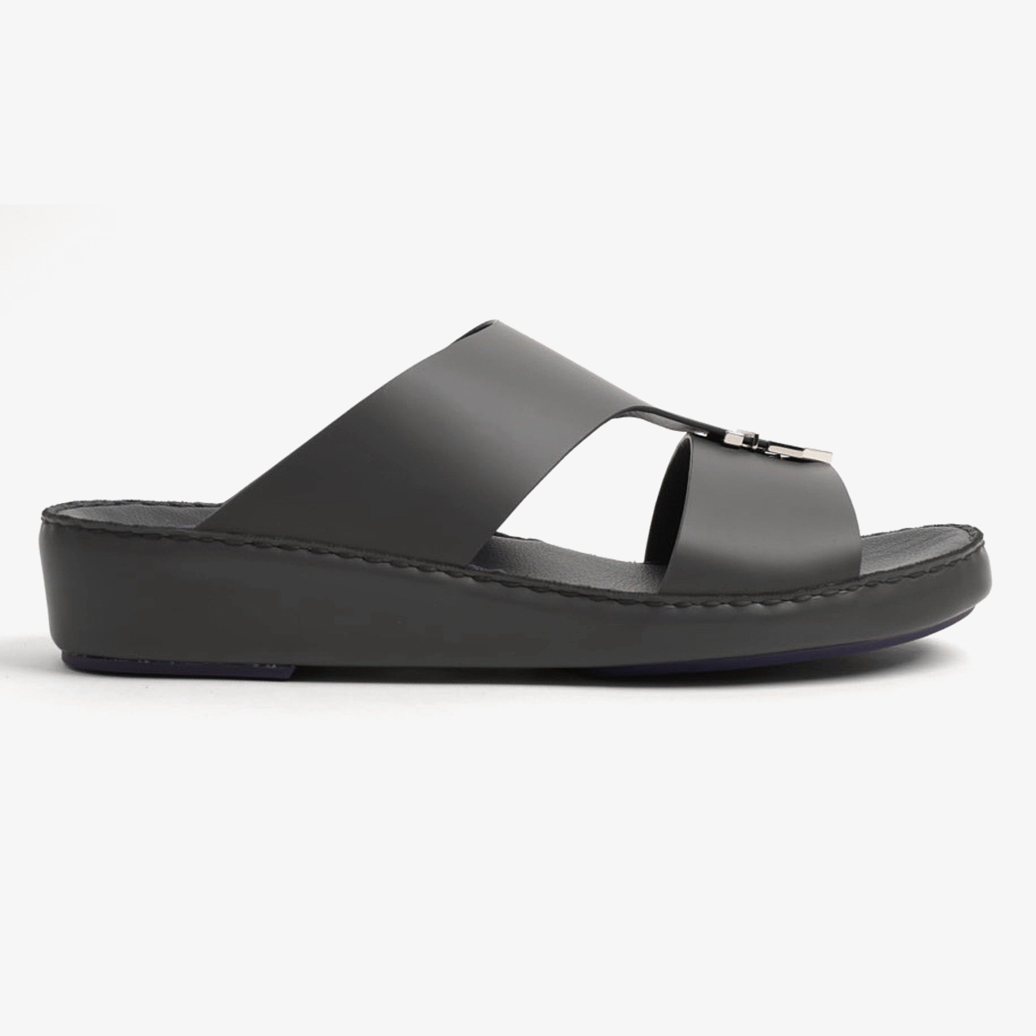 FARADA MEN'S LEATHER SLIP-ON SANDALS WITH STYLISH TRIM BLACK