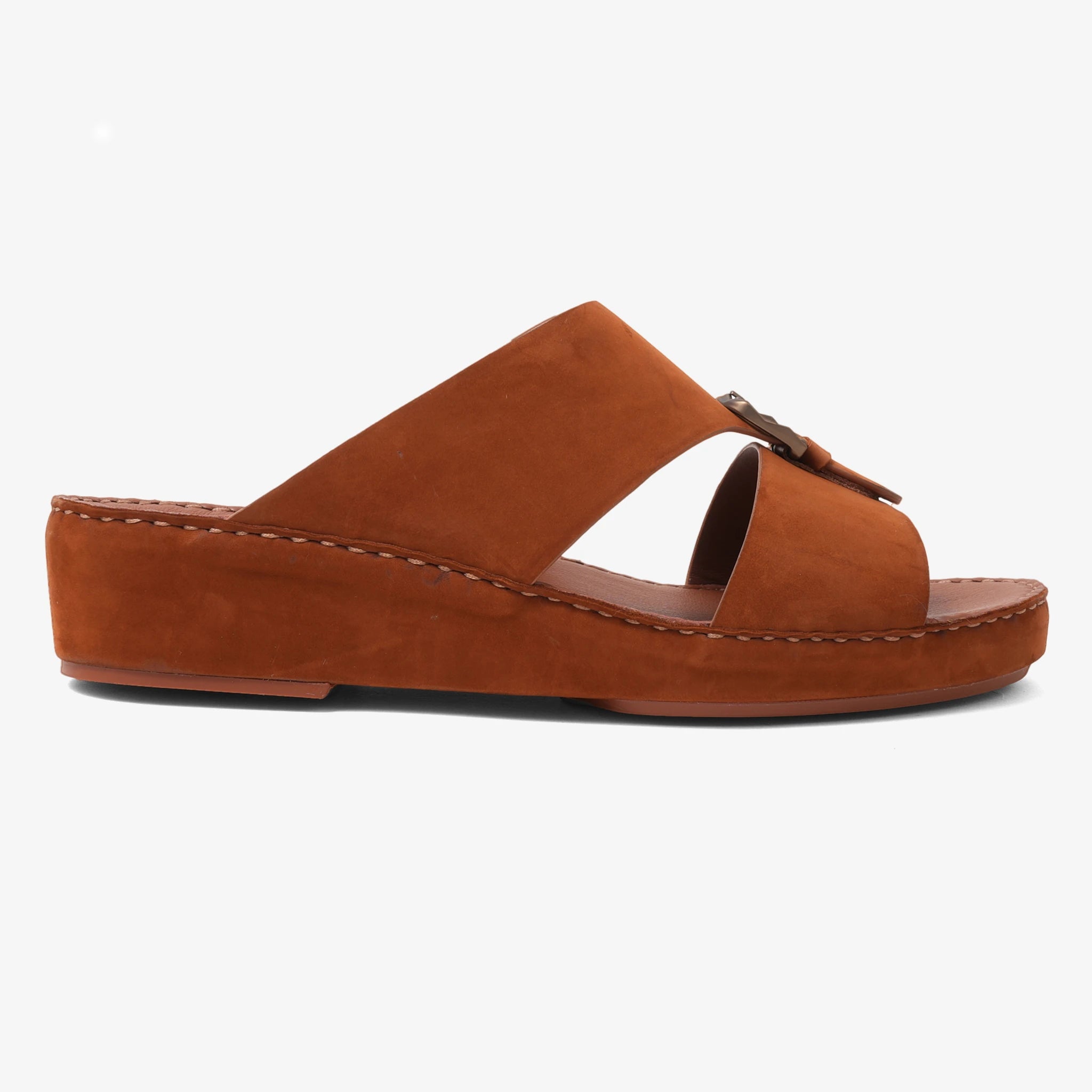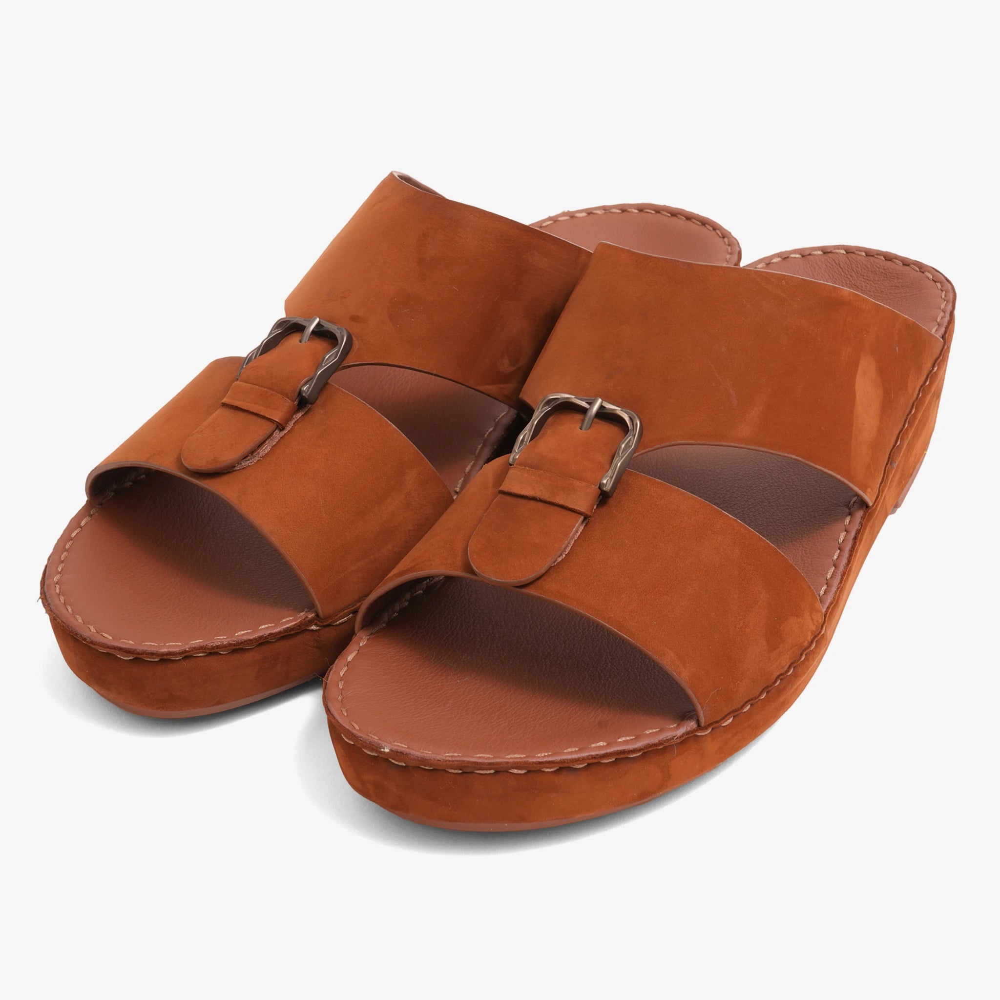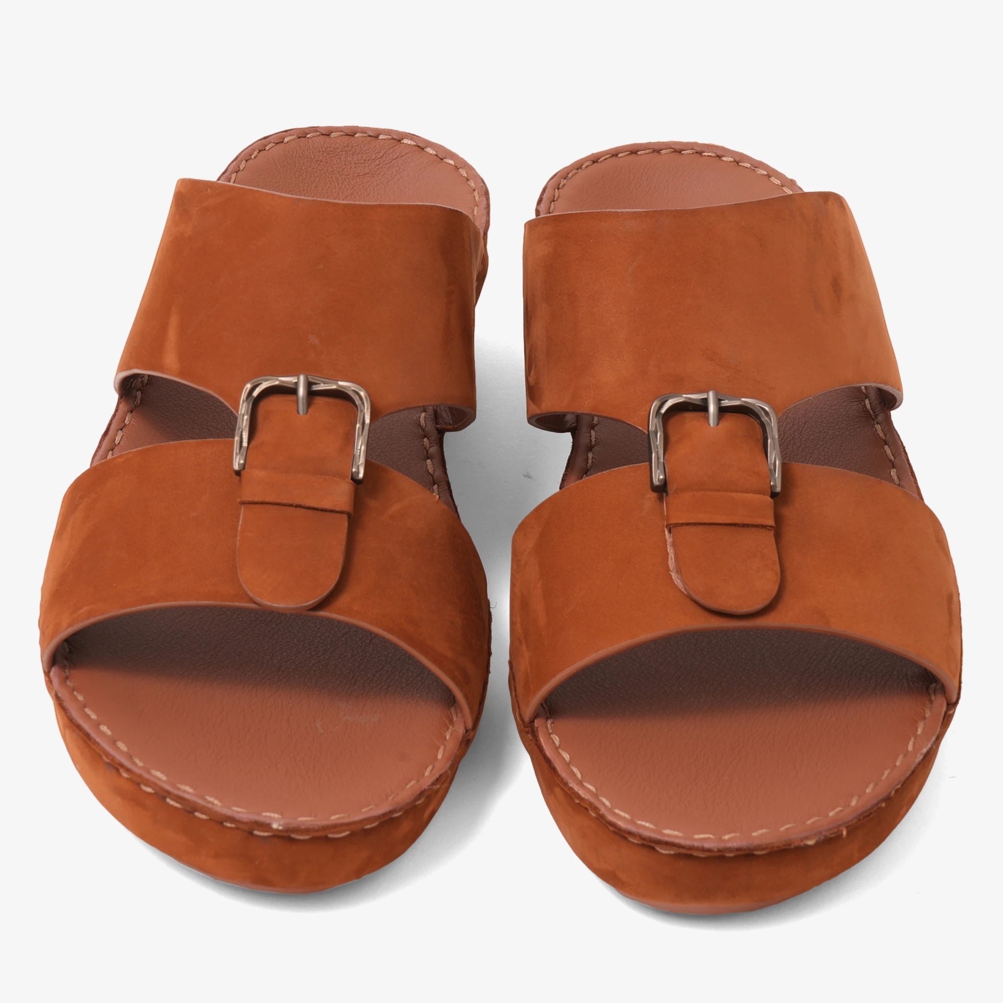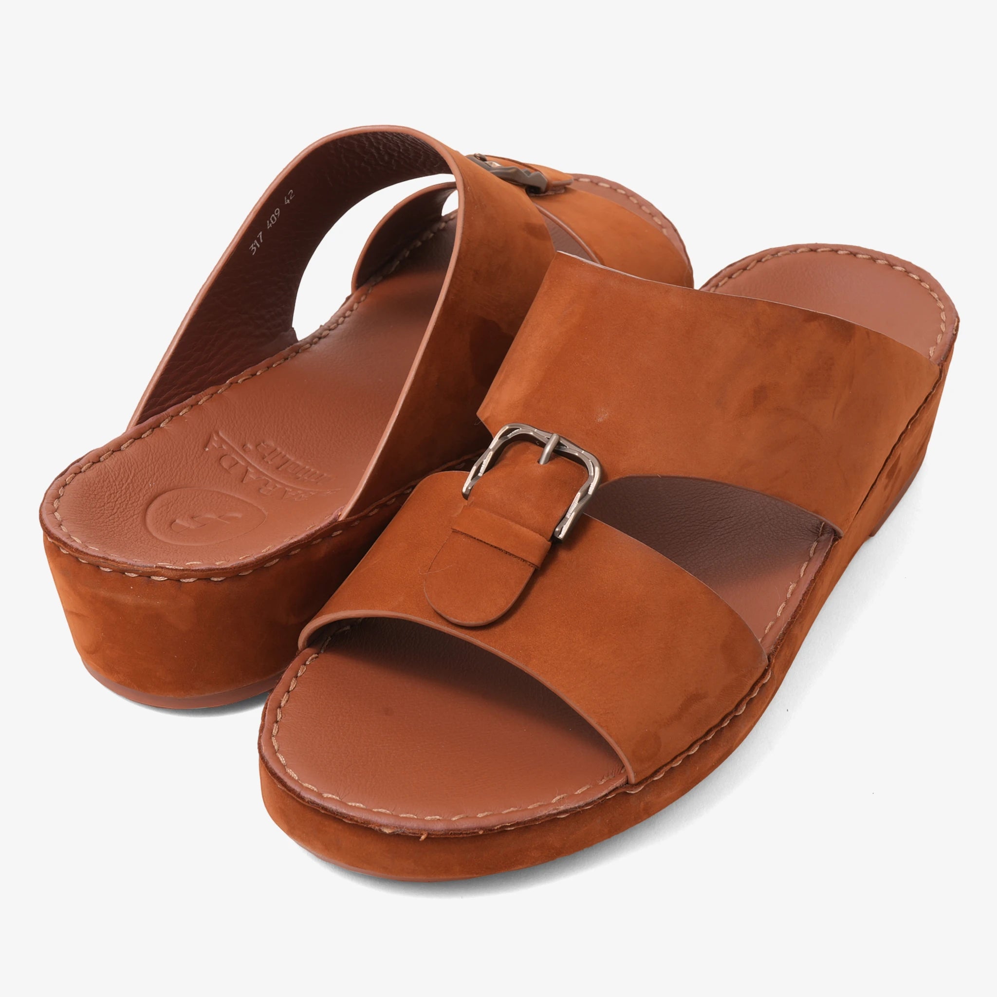 FARADA MEN'S PREMIUM LEATHER SANDALS WITH DUAL BUCKLE STRAPS BRUCIATO