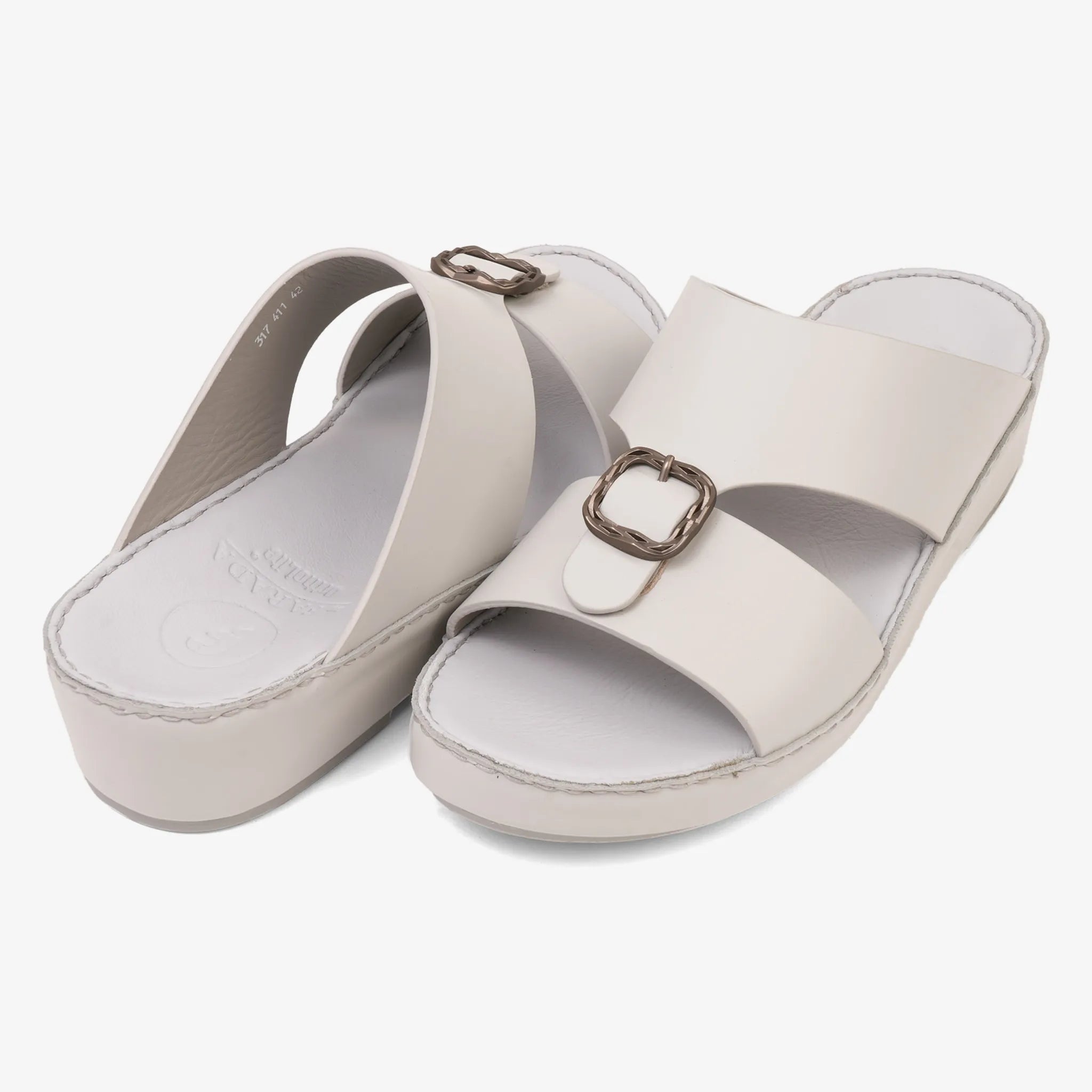 Discover the perfect blend of comfort and style with the Farada Ioconic Arabic Sandals. Made from high-quality leather, these sandals offer a soft and supportive fit for all-day wear. The distinctive brass double F buckle adds a touch of modern flair, while the traditional design ensures timeless appeal. Elevate your footwear collection with these meticulously crafted Arabic sandals from Farada.