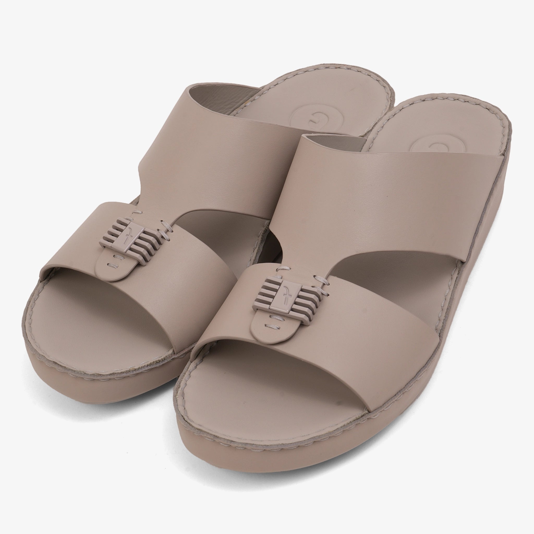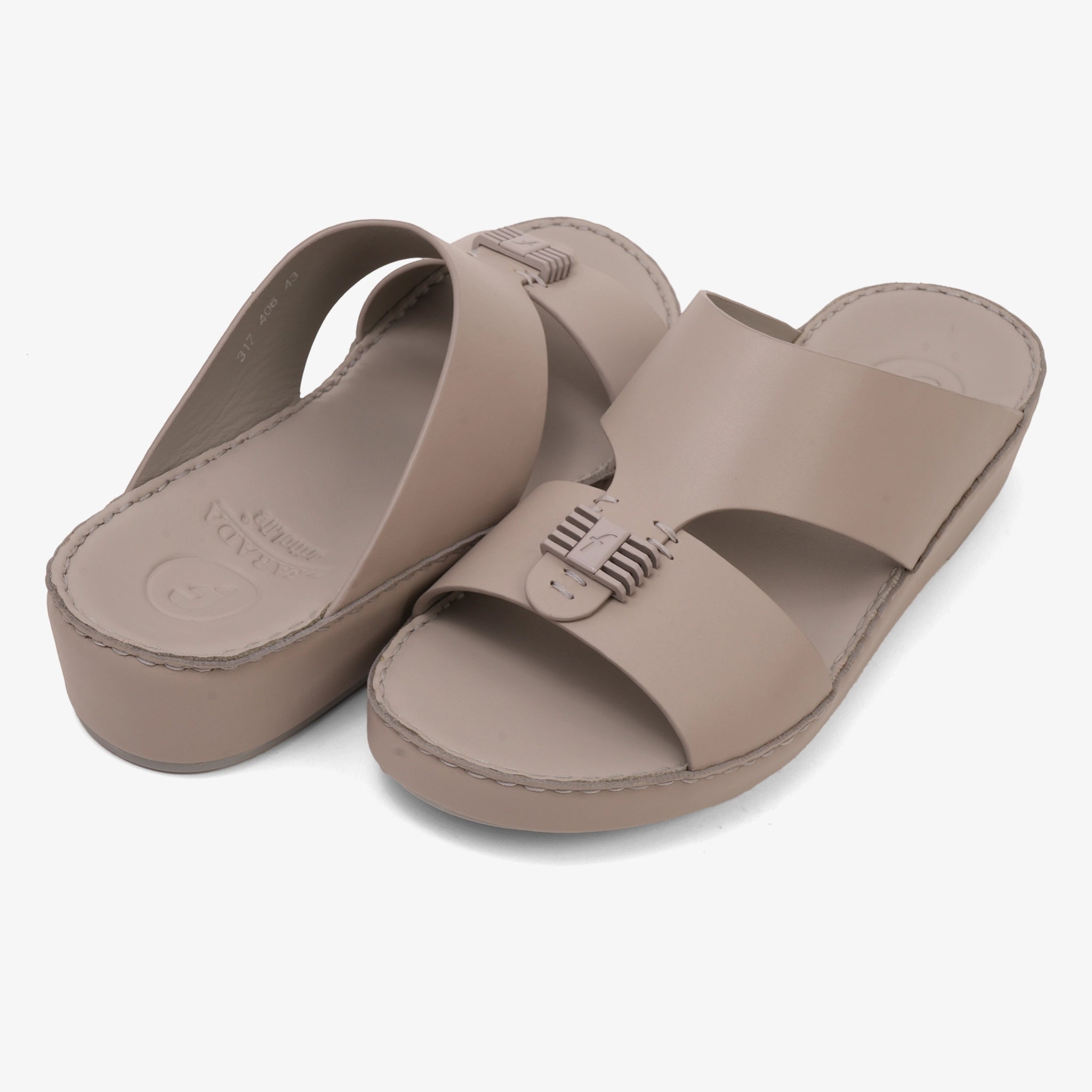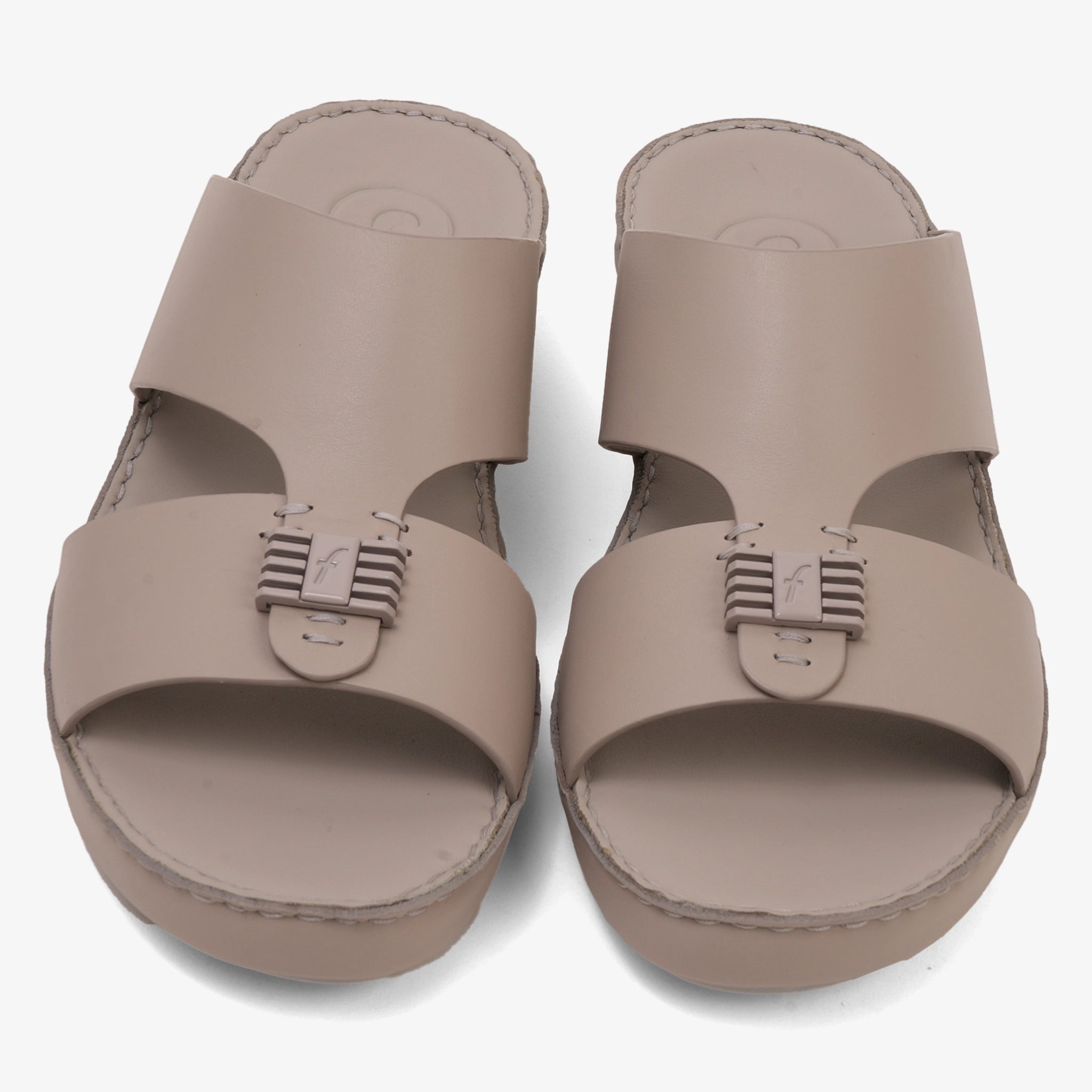FARADA MENS SLIDE WITH TEXTURED BUCKLE SANDALS WARM GREY