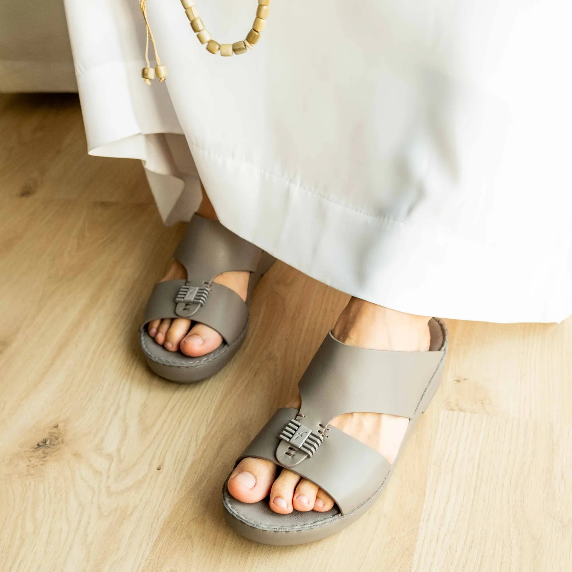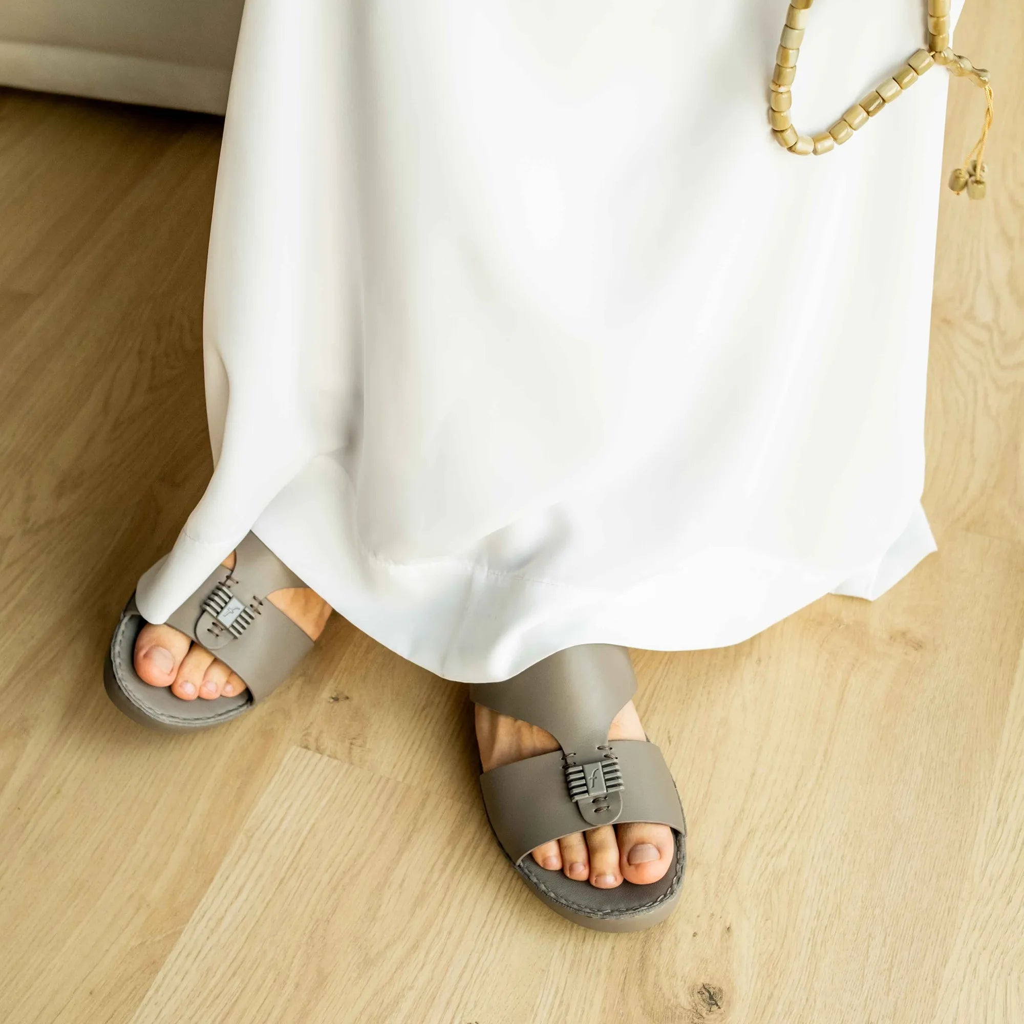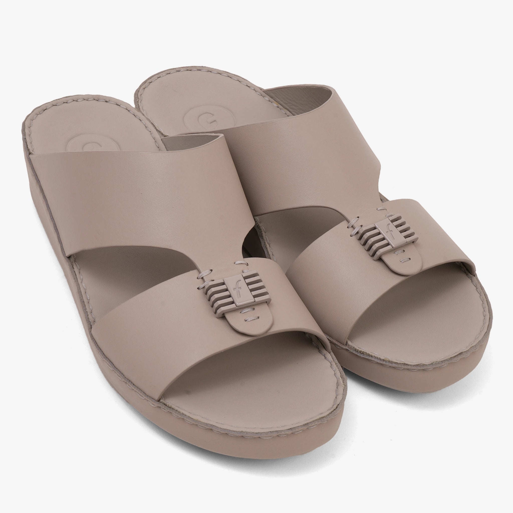FARADA MENS SLIDE WITH TEXTURED BUCKLE SANDALS WARM GREY