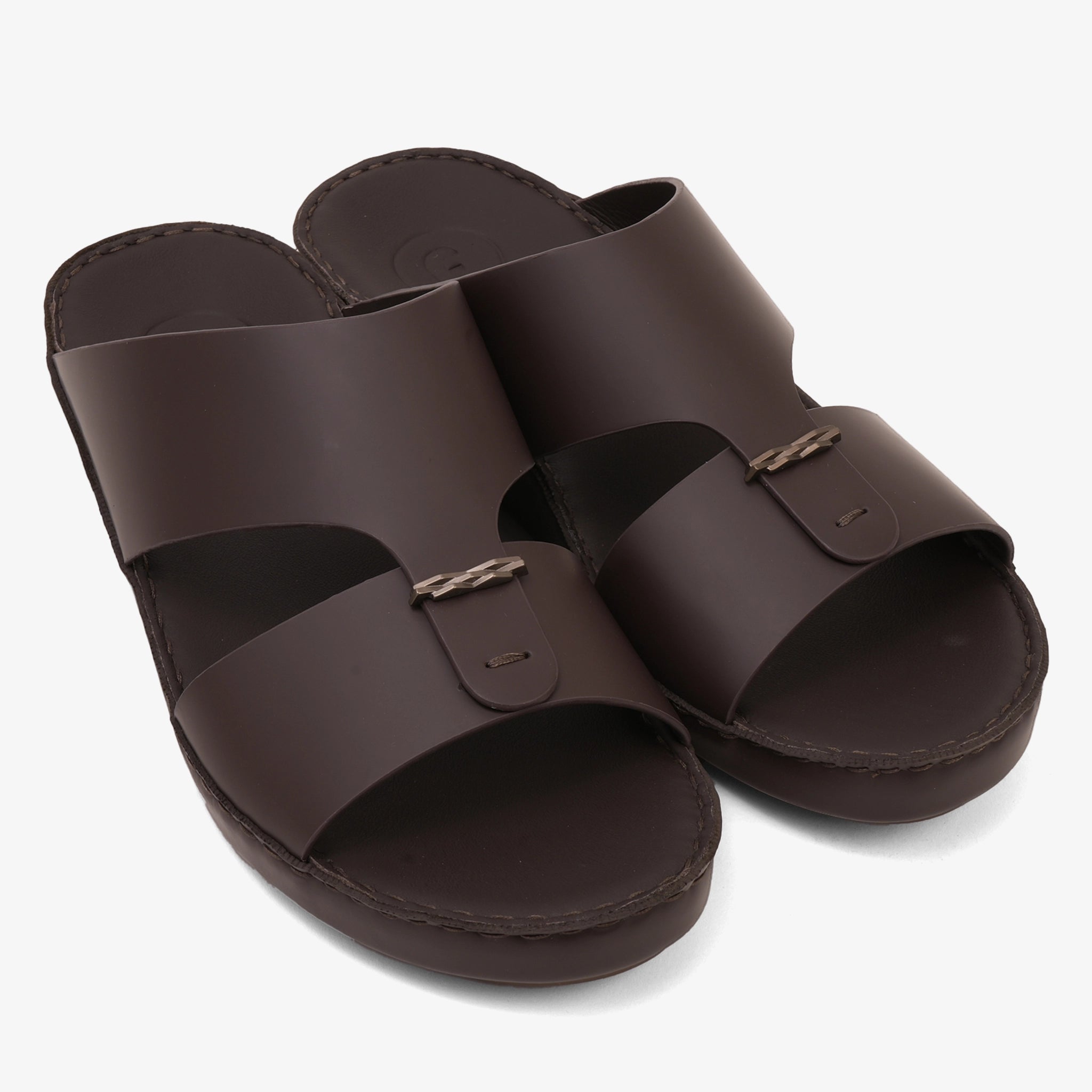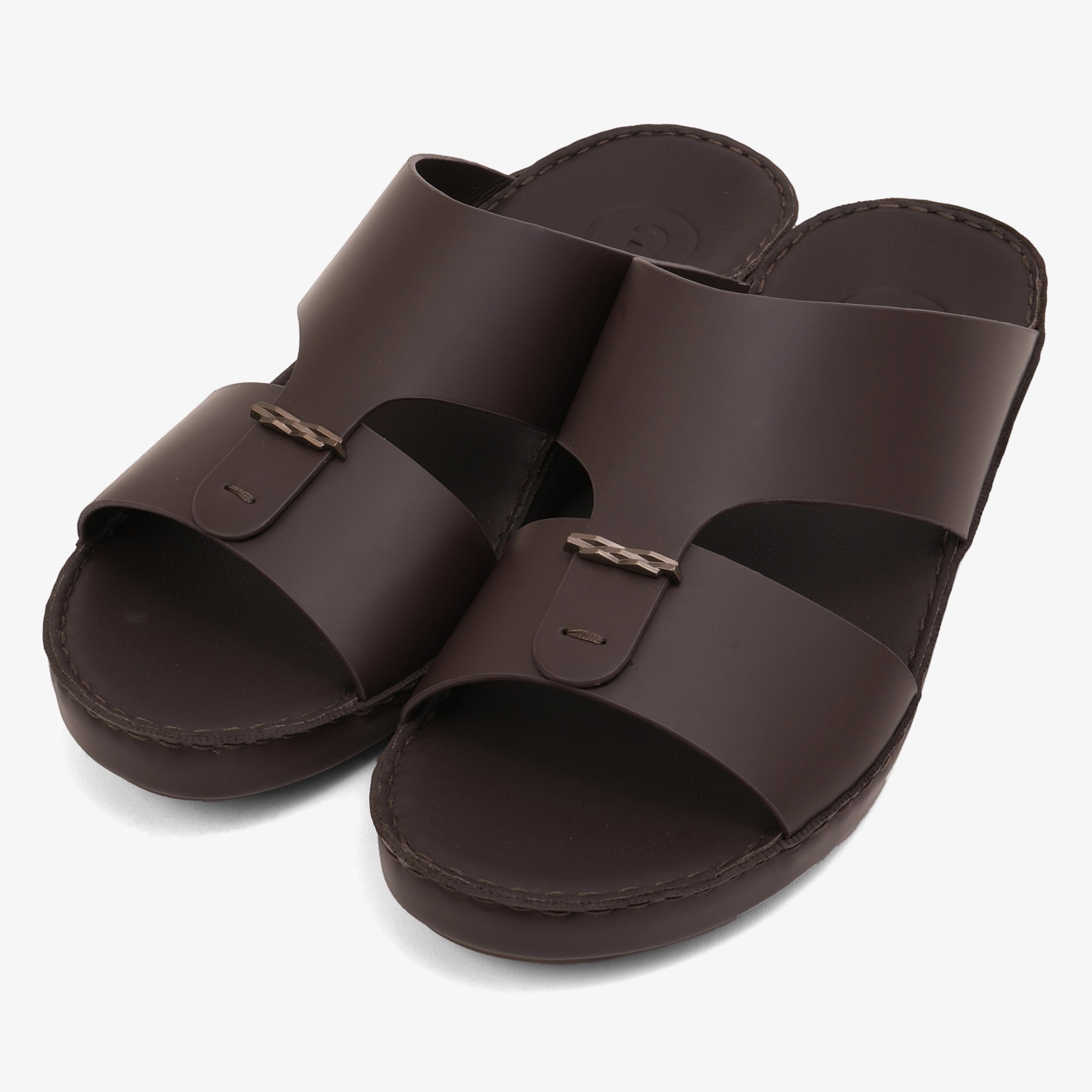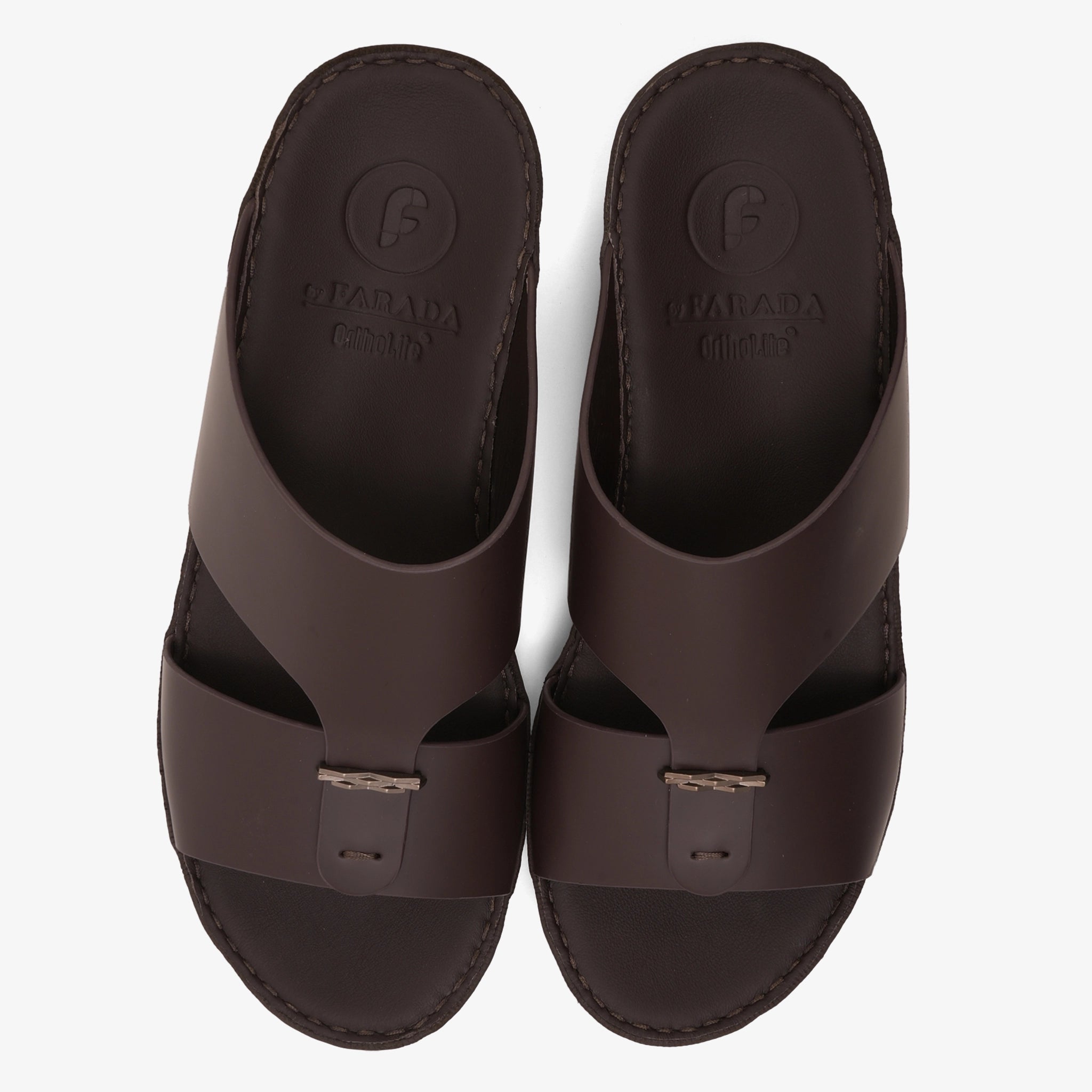 FARADA TIMELESS LEATHER WITH 3D BUCKLE SANDALS BROWN