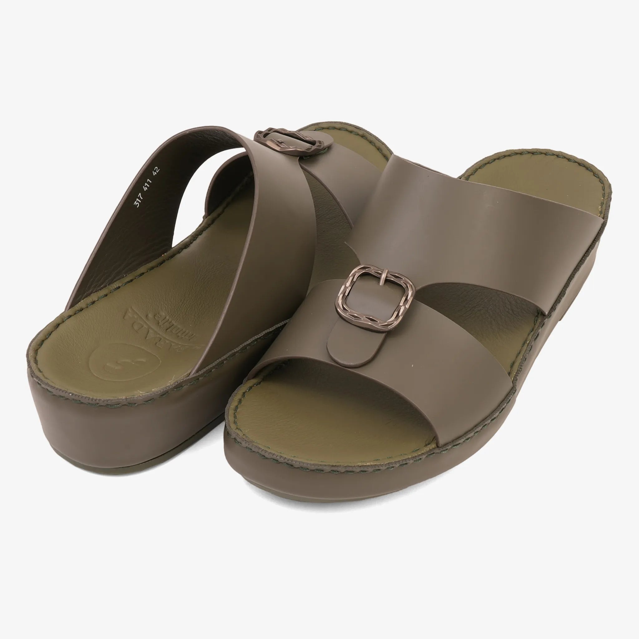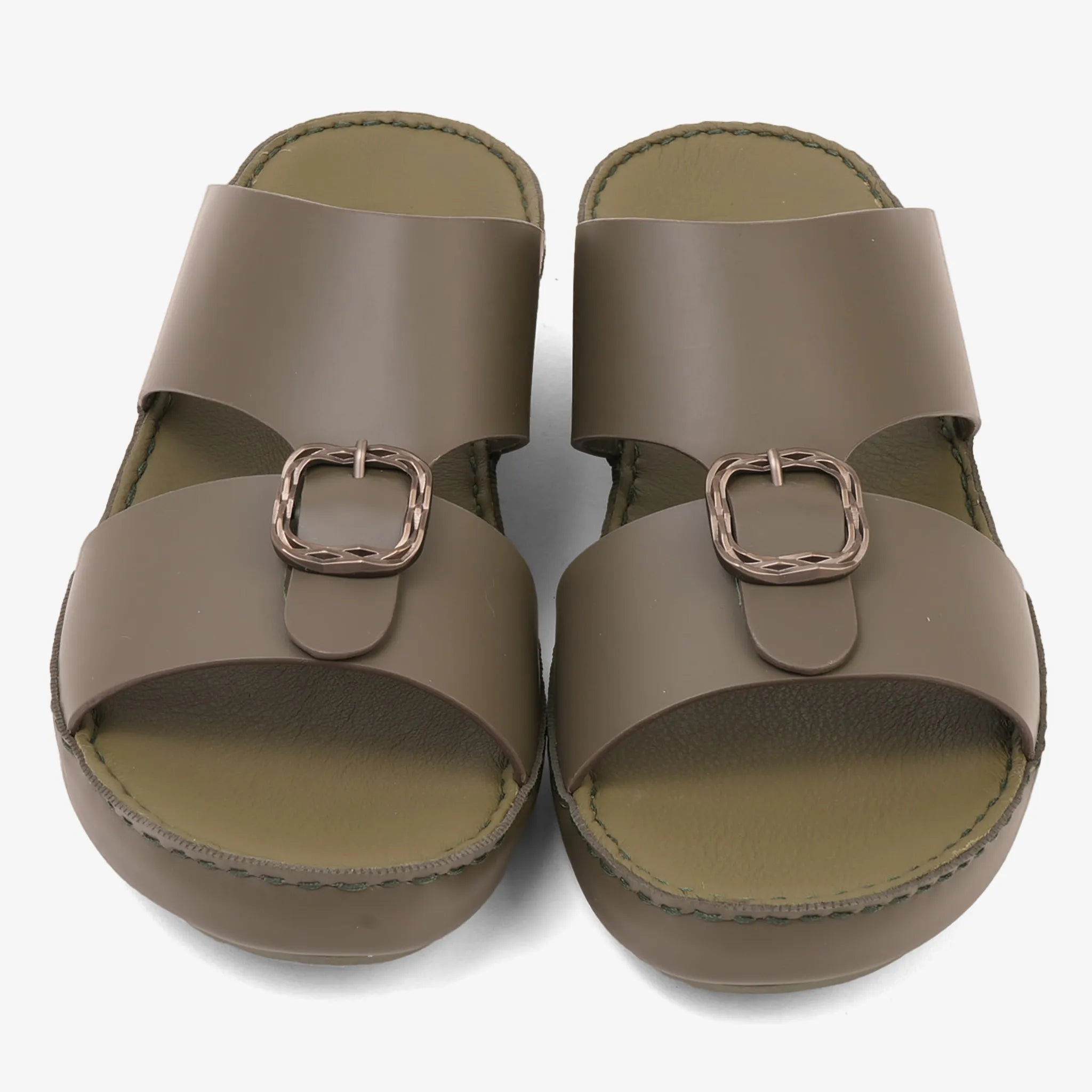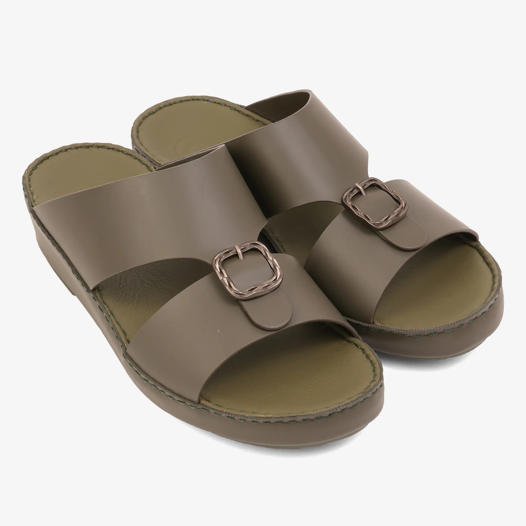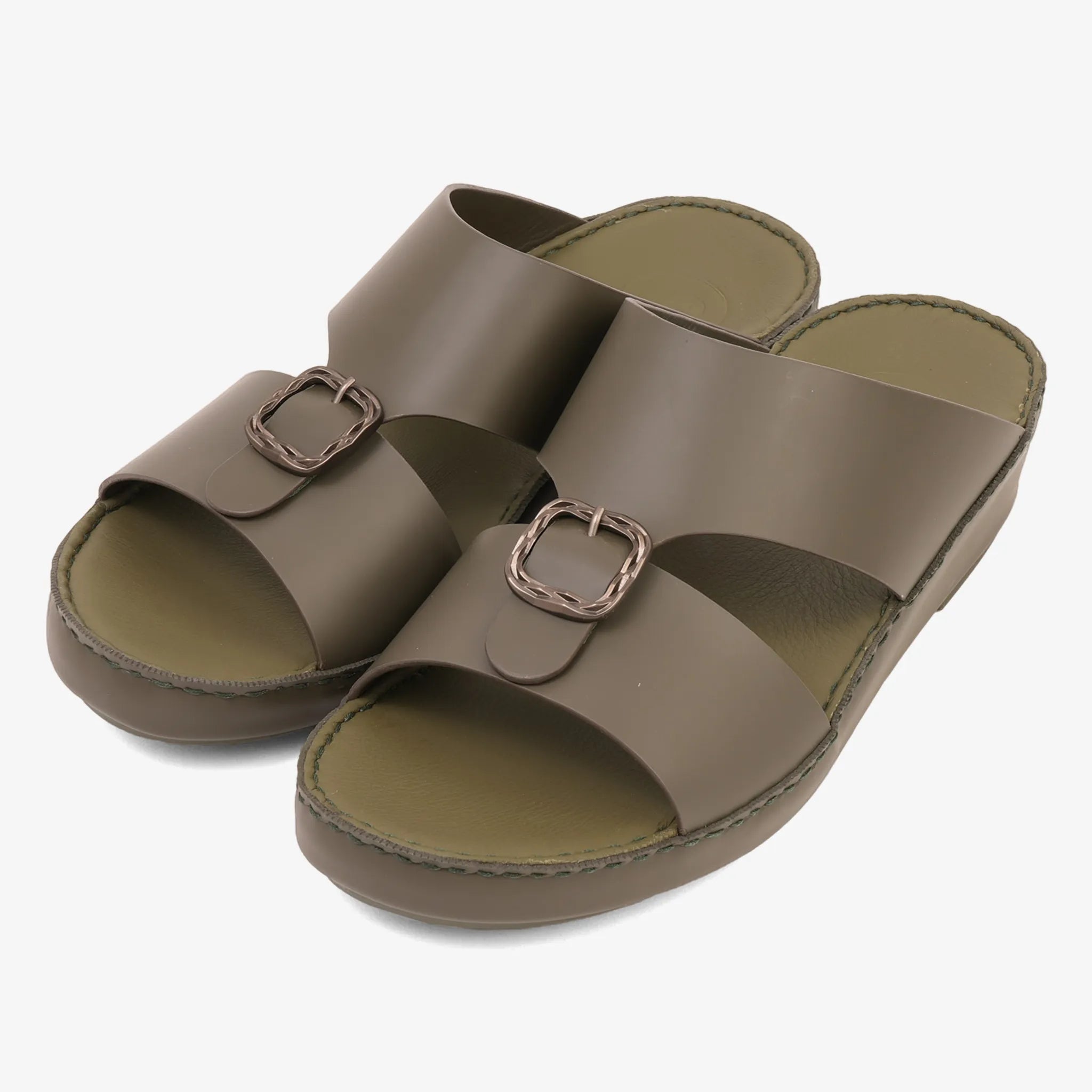 FARADA DA VINCI BRASS ICONIC DOUBLE F TRIM ARABIC SANDALS OLIVE