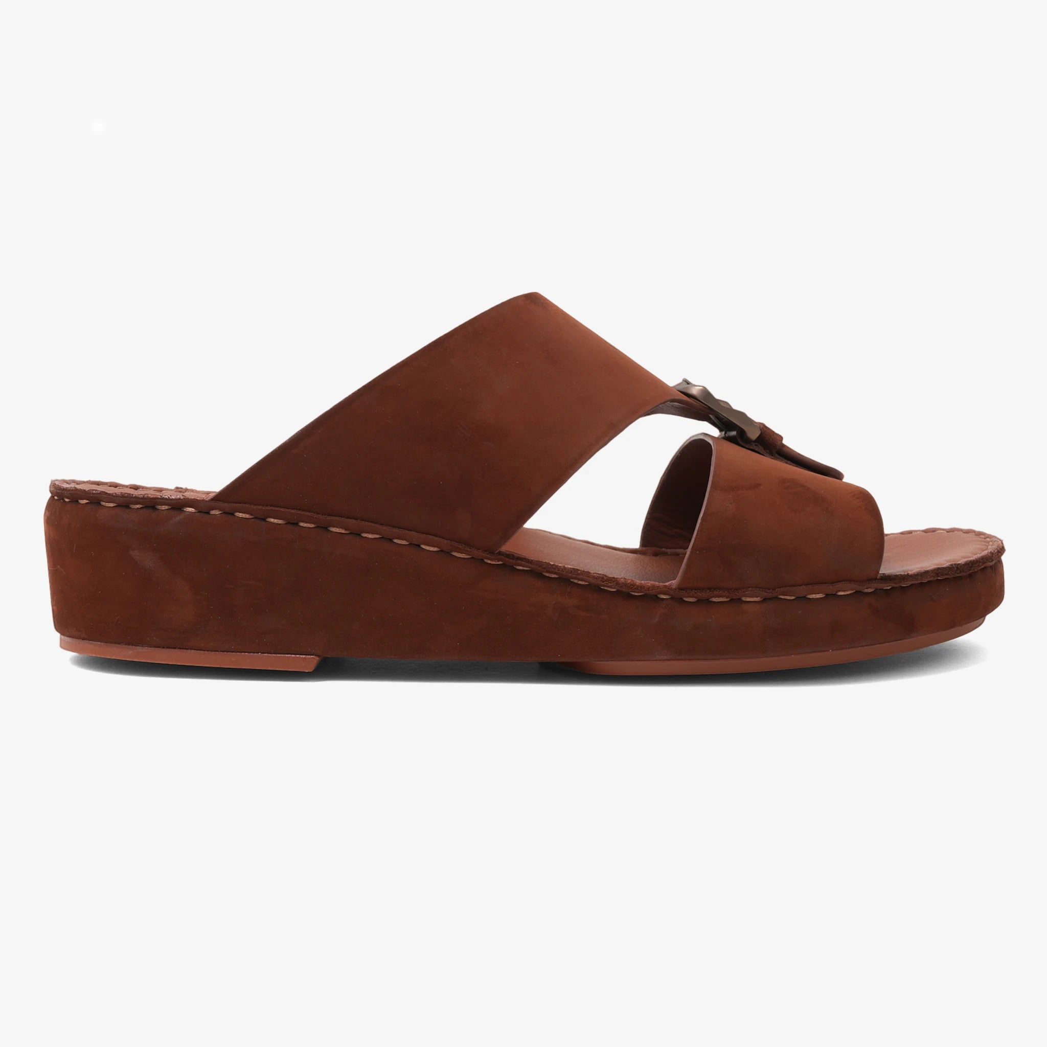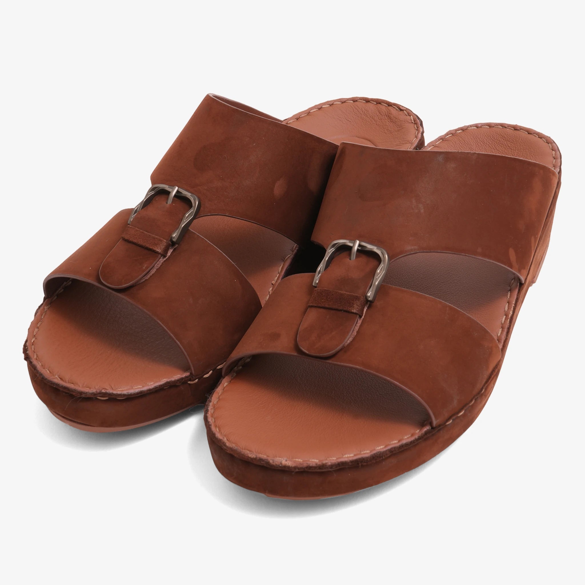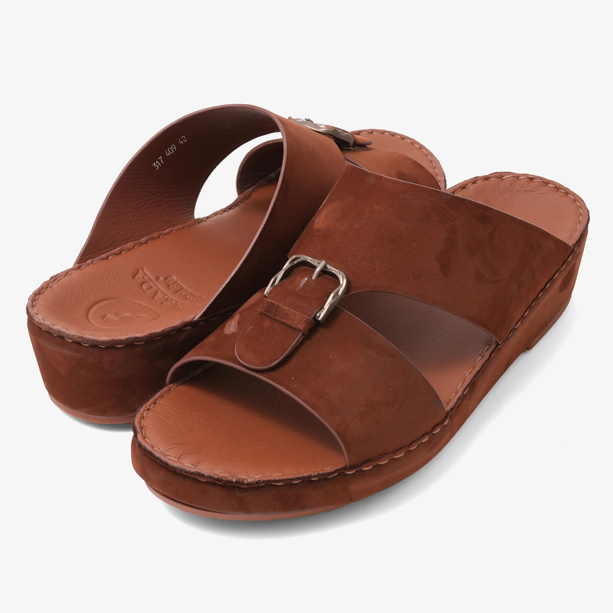 FARADA MEN'S PREMIUM LEATHER SANDALS WITH DUAL BUCKLE STRAPS BRANDY