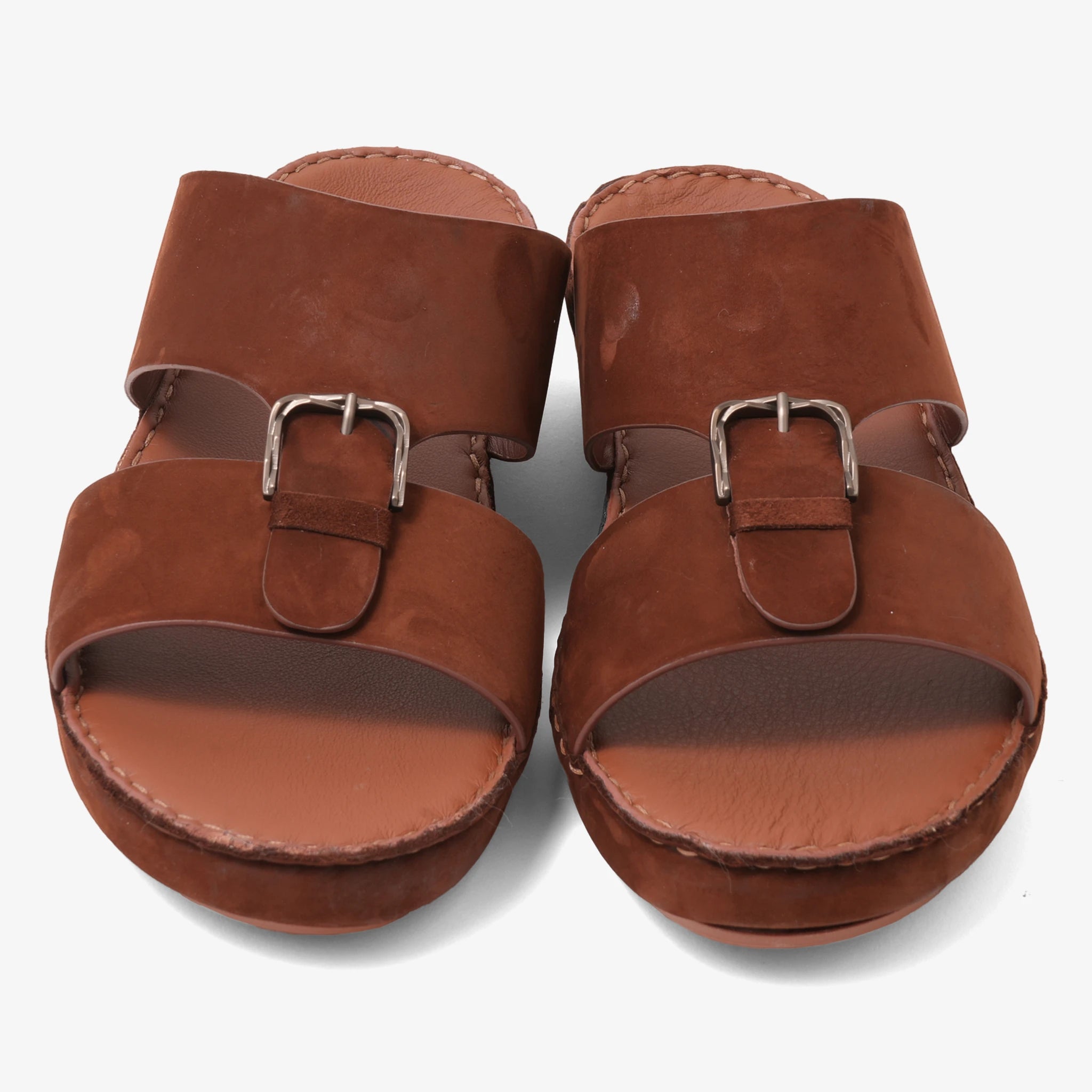 Step into effortless style and comfort with these premium brandy leather slide sandals. Crafted with soft, genuine leather and a cushioned footbed, they feature a dual broad-strap design with metallic buckle accents for a modern, secure fit. The hand-stitched sole adds a touch of craftsmanship, making them ideal for everyday wear, casual outings, or summer occasions. A perfect blend of durability, minimalism, and elegance.