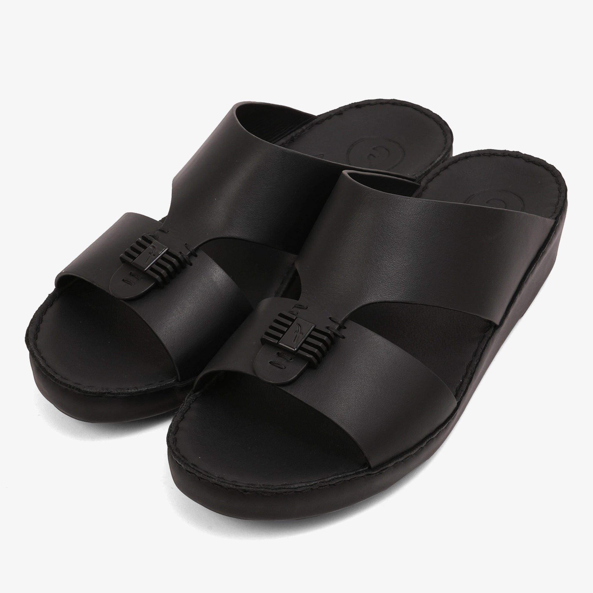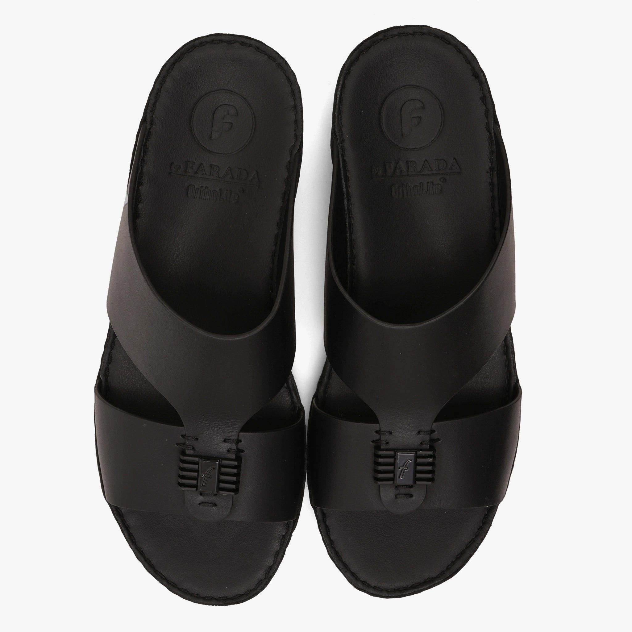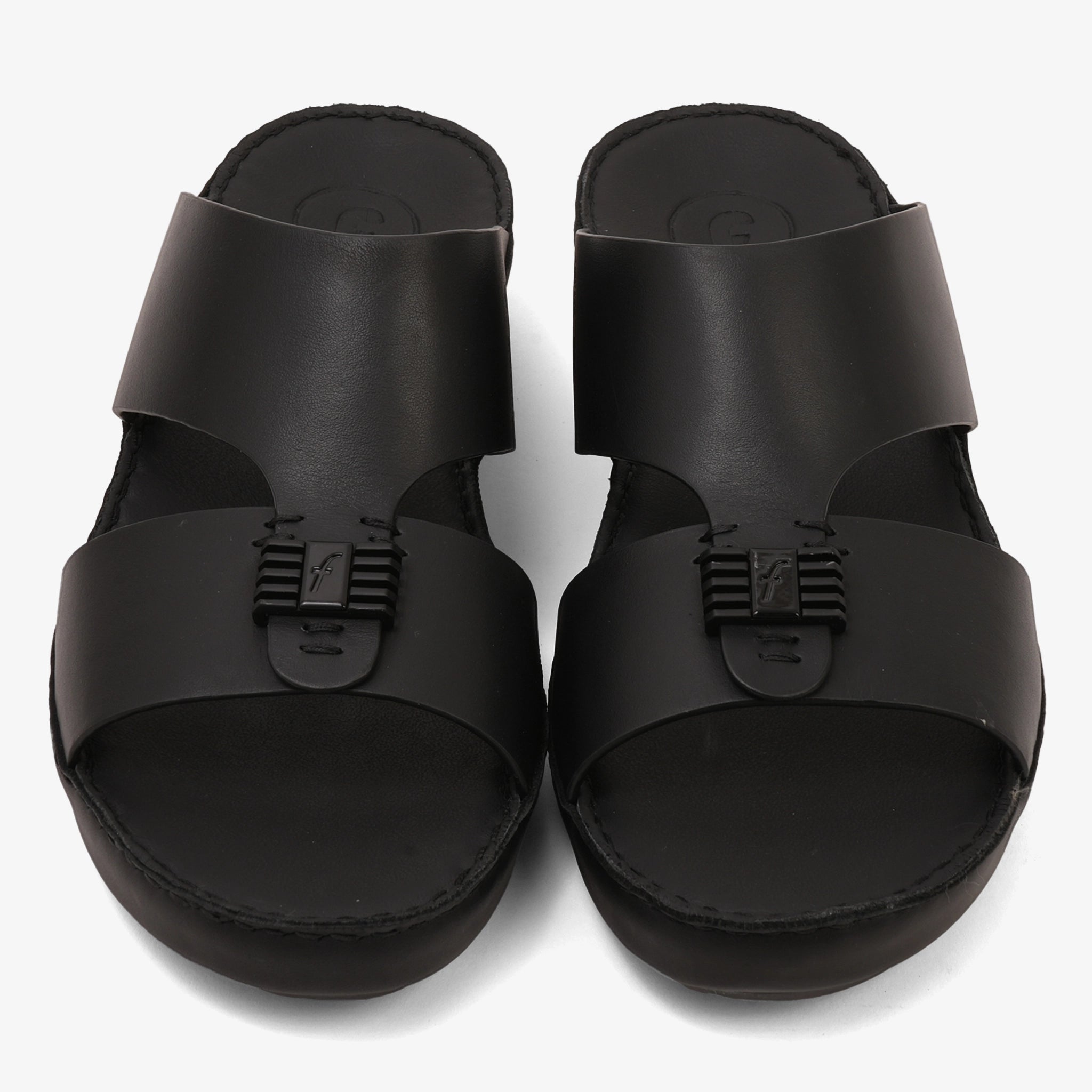 FARADA MENS SLIDE WITH TEXTURED BUCKLE SANDALS BLACK