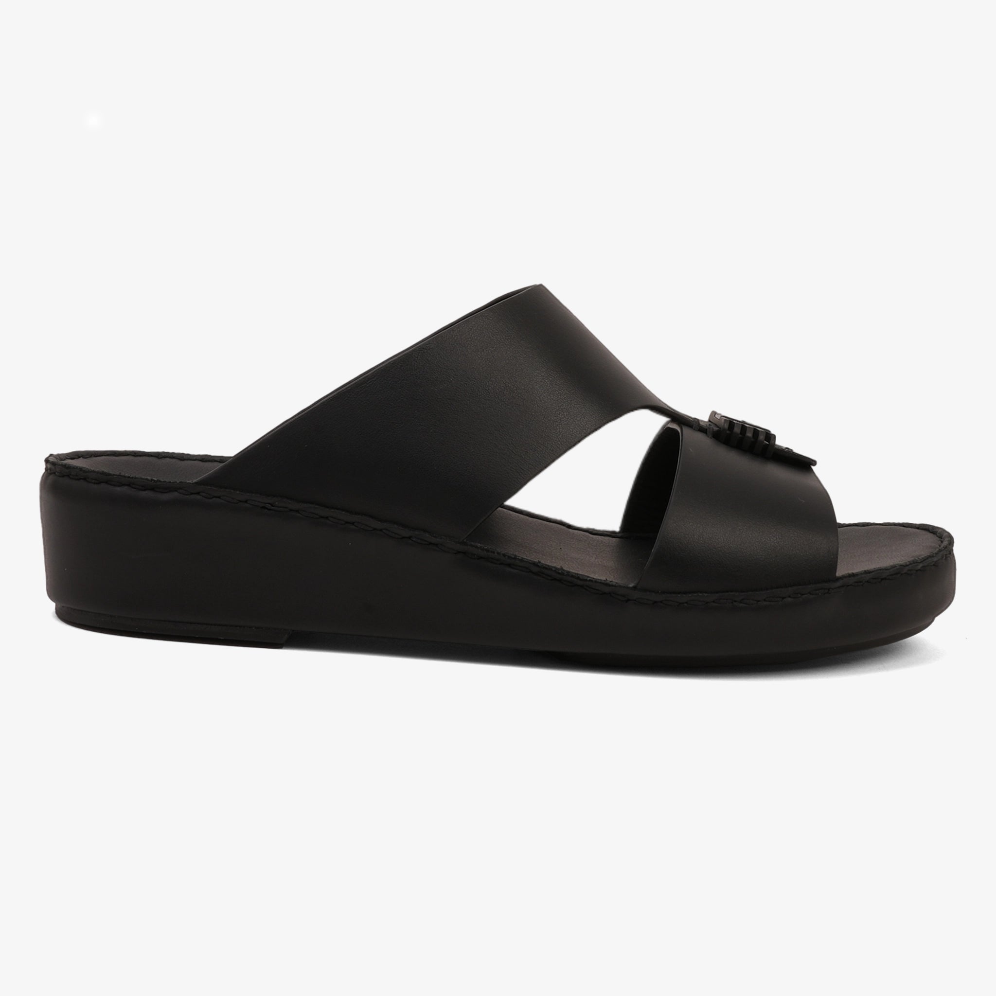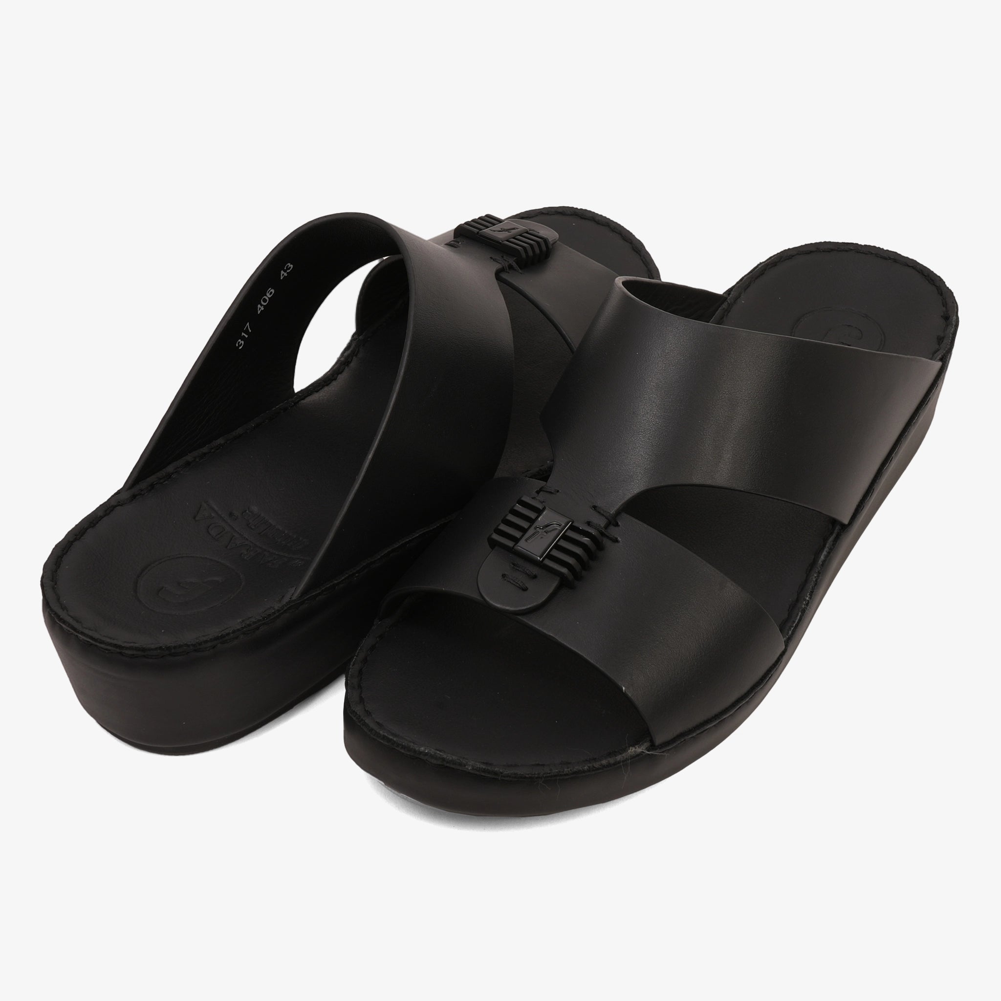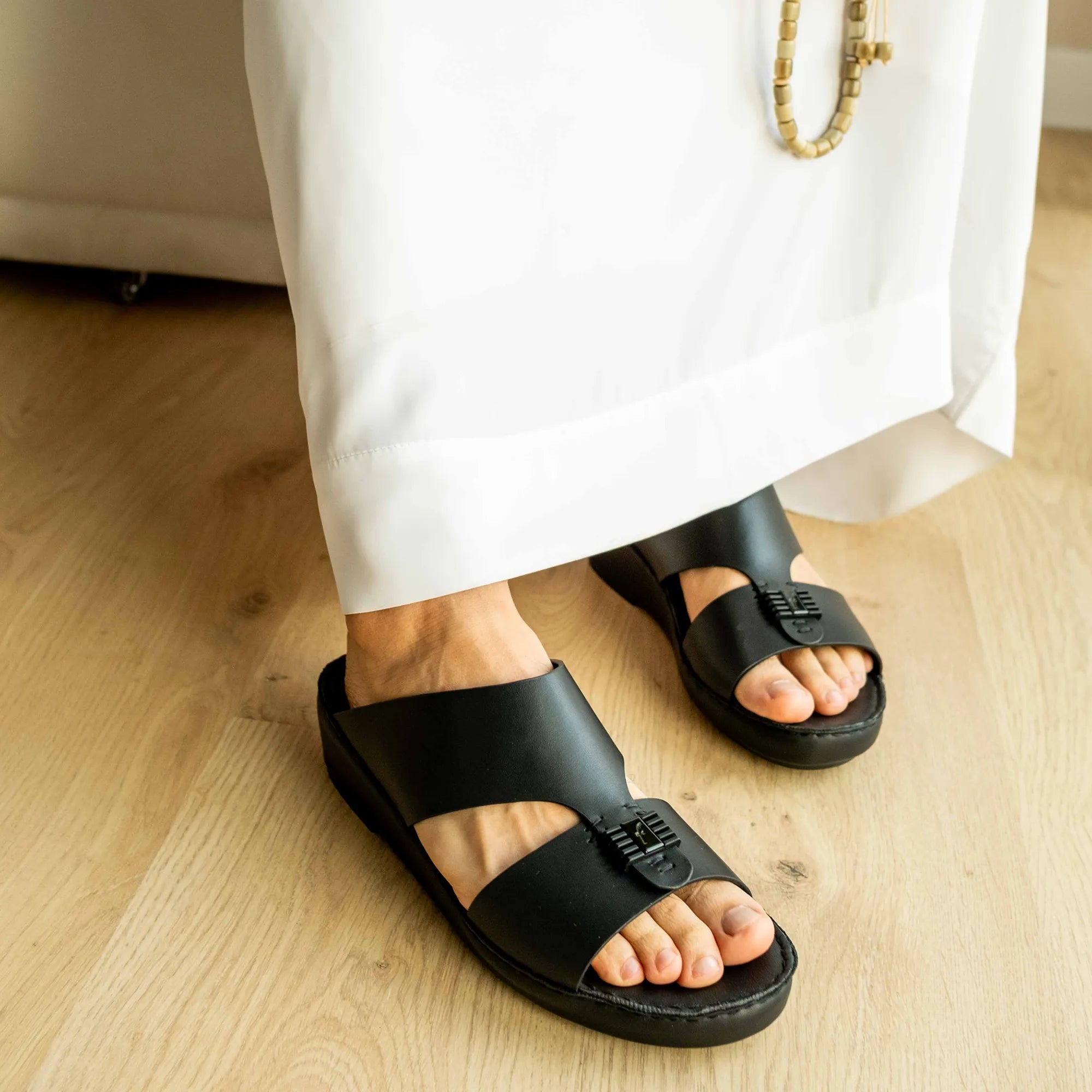 FARADA MENS SLIDE WITH TEXTURED BUCKLE SANDALS BLACK