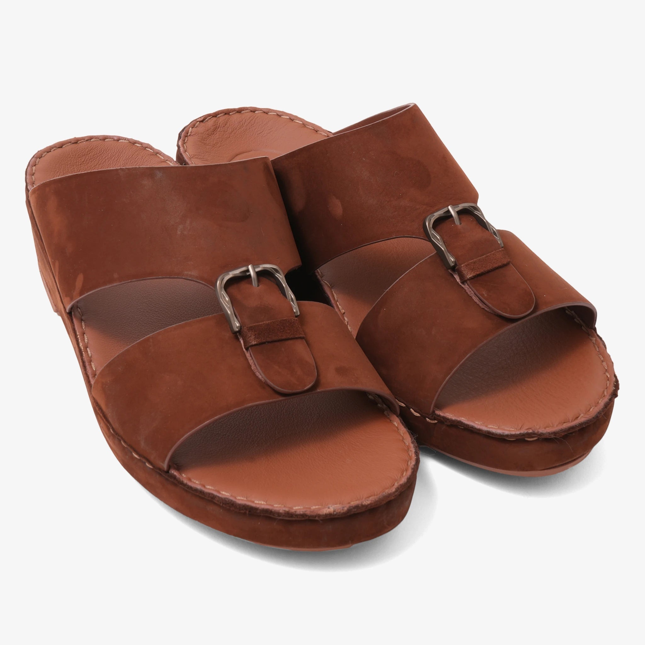 Step into effortless style and comfort with these premium brandy leather slide sandals. Crafted with soft, genuine leather and a cushioned footbed, they feature a dual broad-strap design with metallic buckle accents for a modern, secure fit. The hand-stitched sole adds a touch of craftsmanship, making them ideal for everyday wear, casual outings, or summer occasions. A perfect blend of durability, minimalism, and elegance.