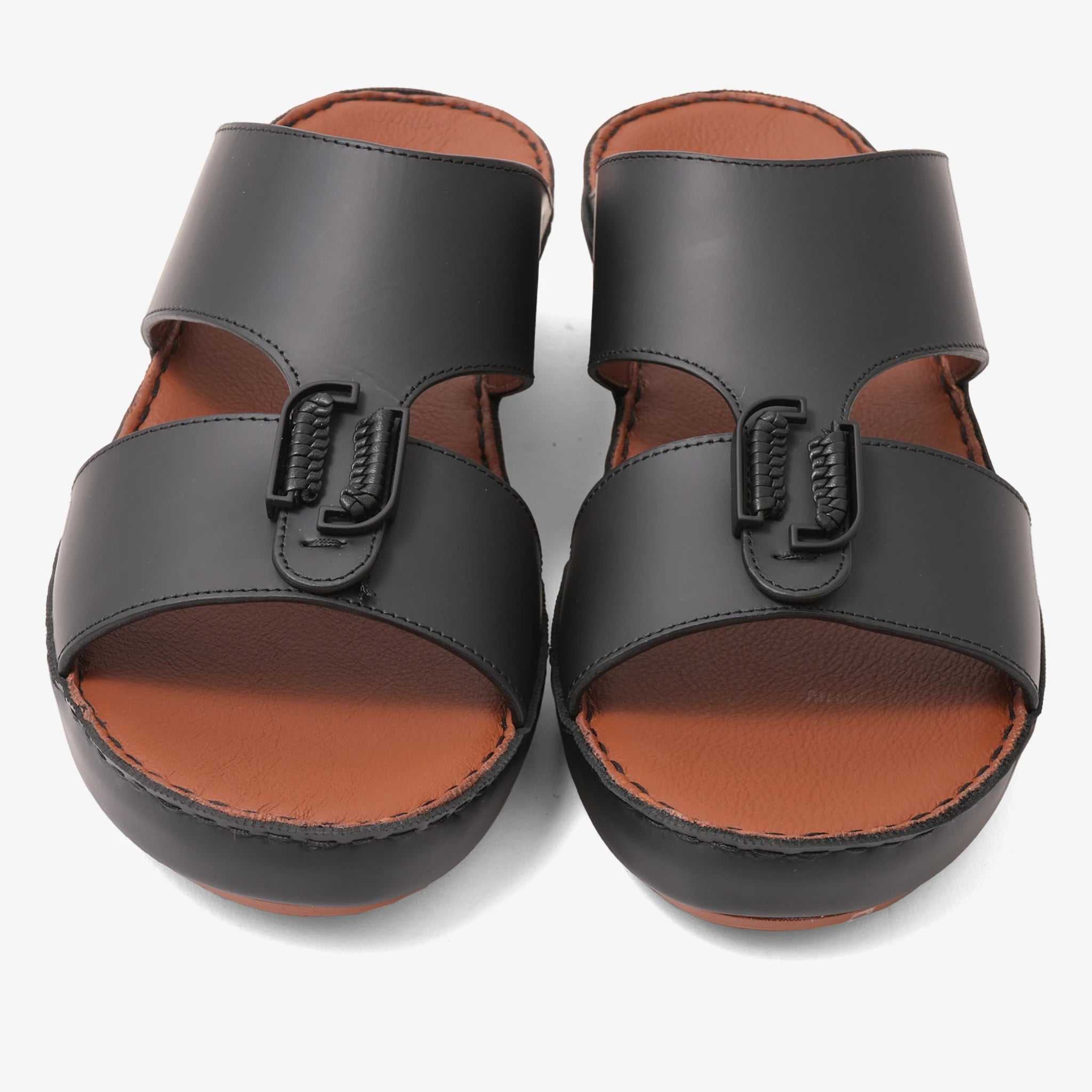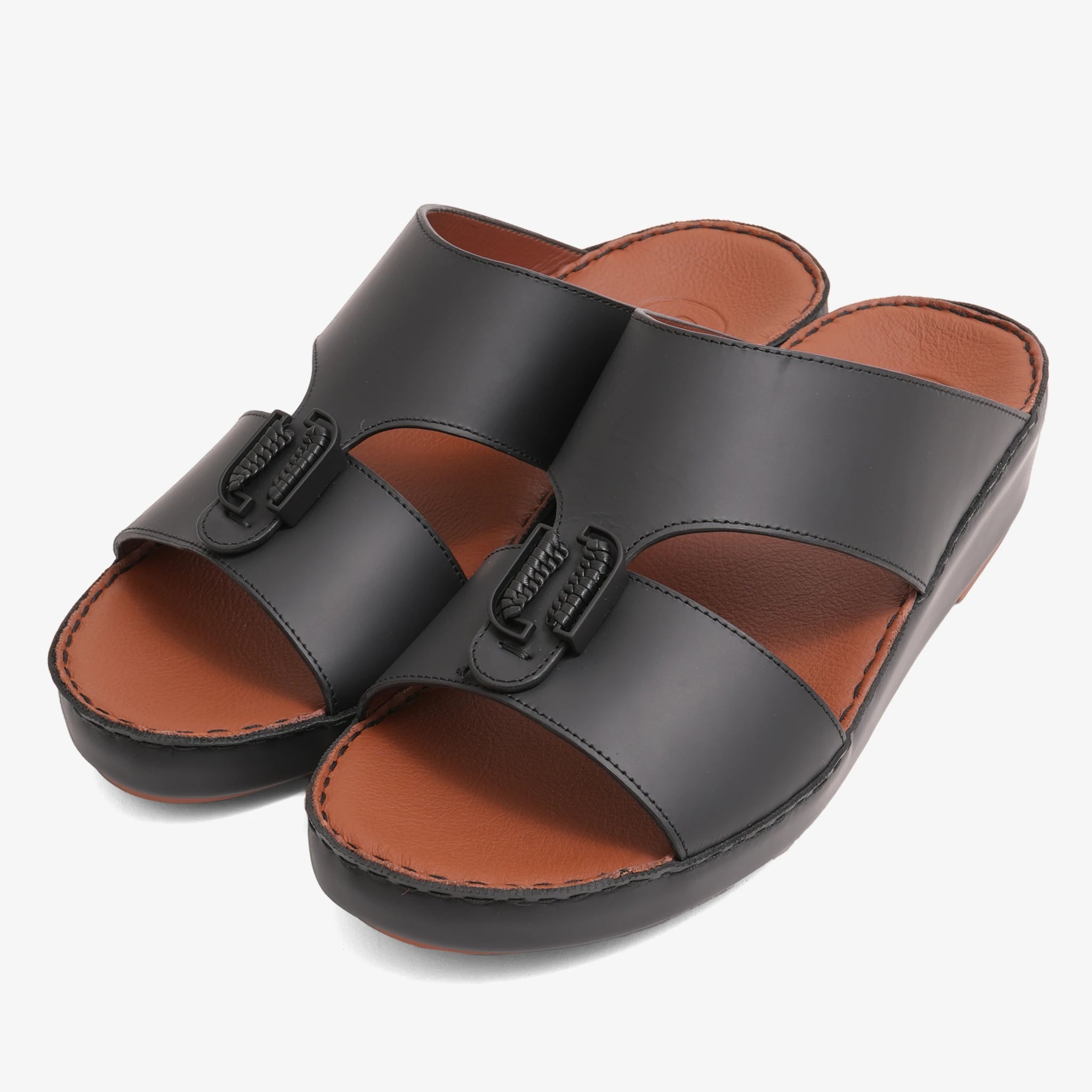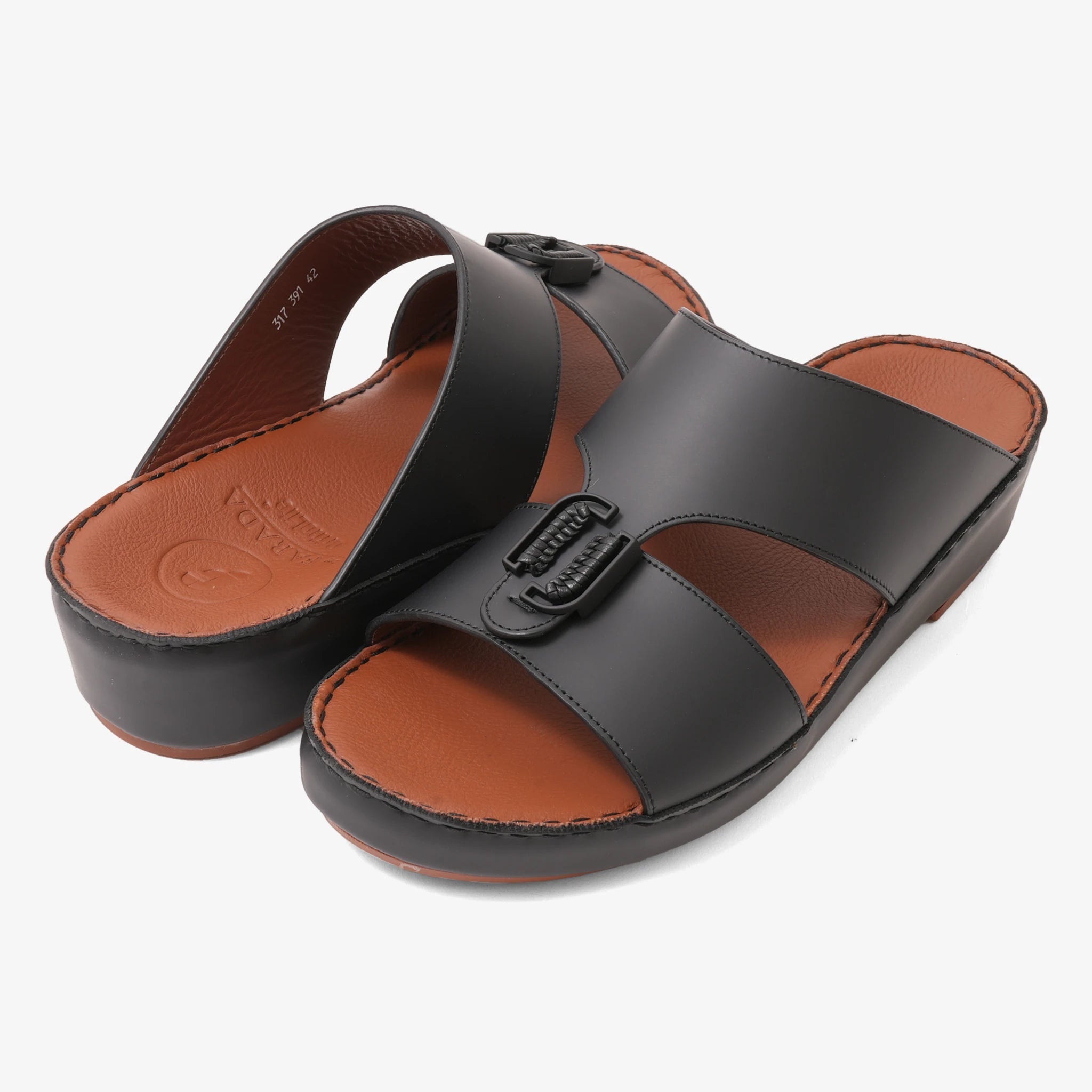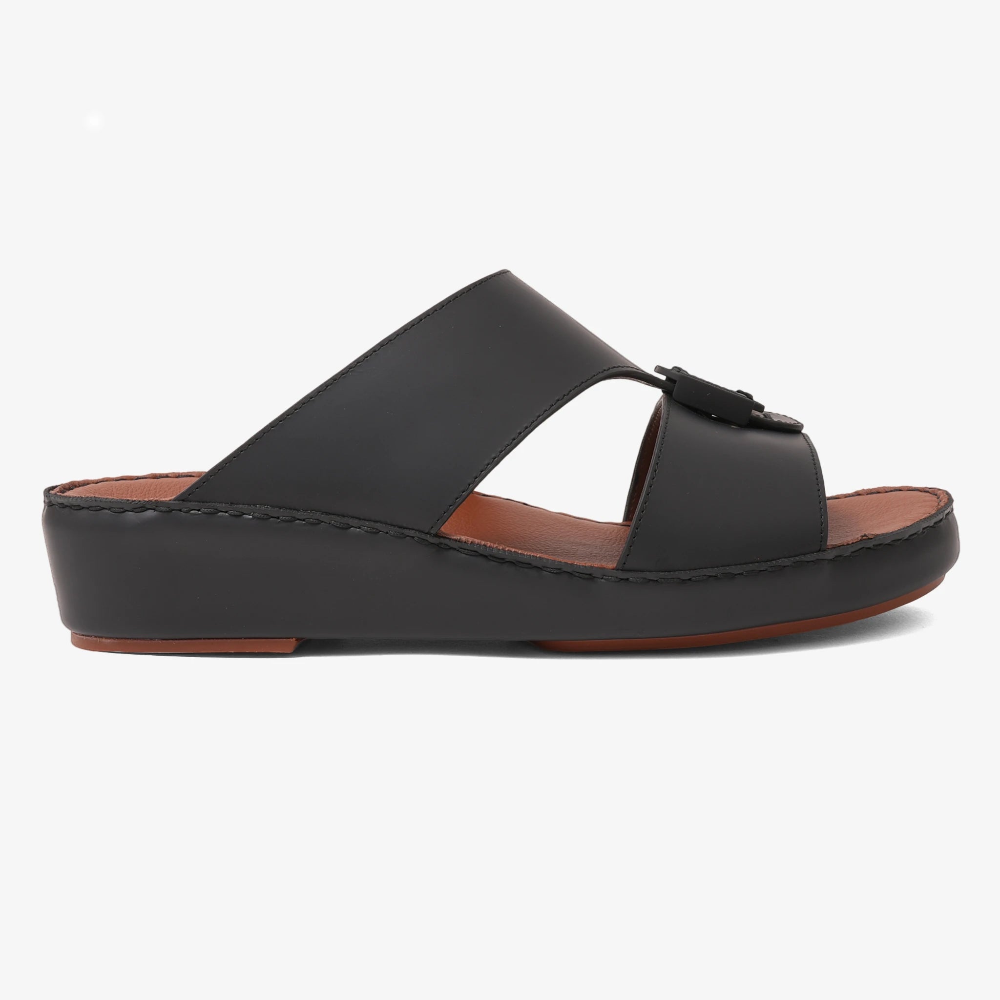 FARADA DESIGNER MEN'S LEATHER ARABIC SANDALS BUCKLE ACCENT BLACK