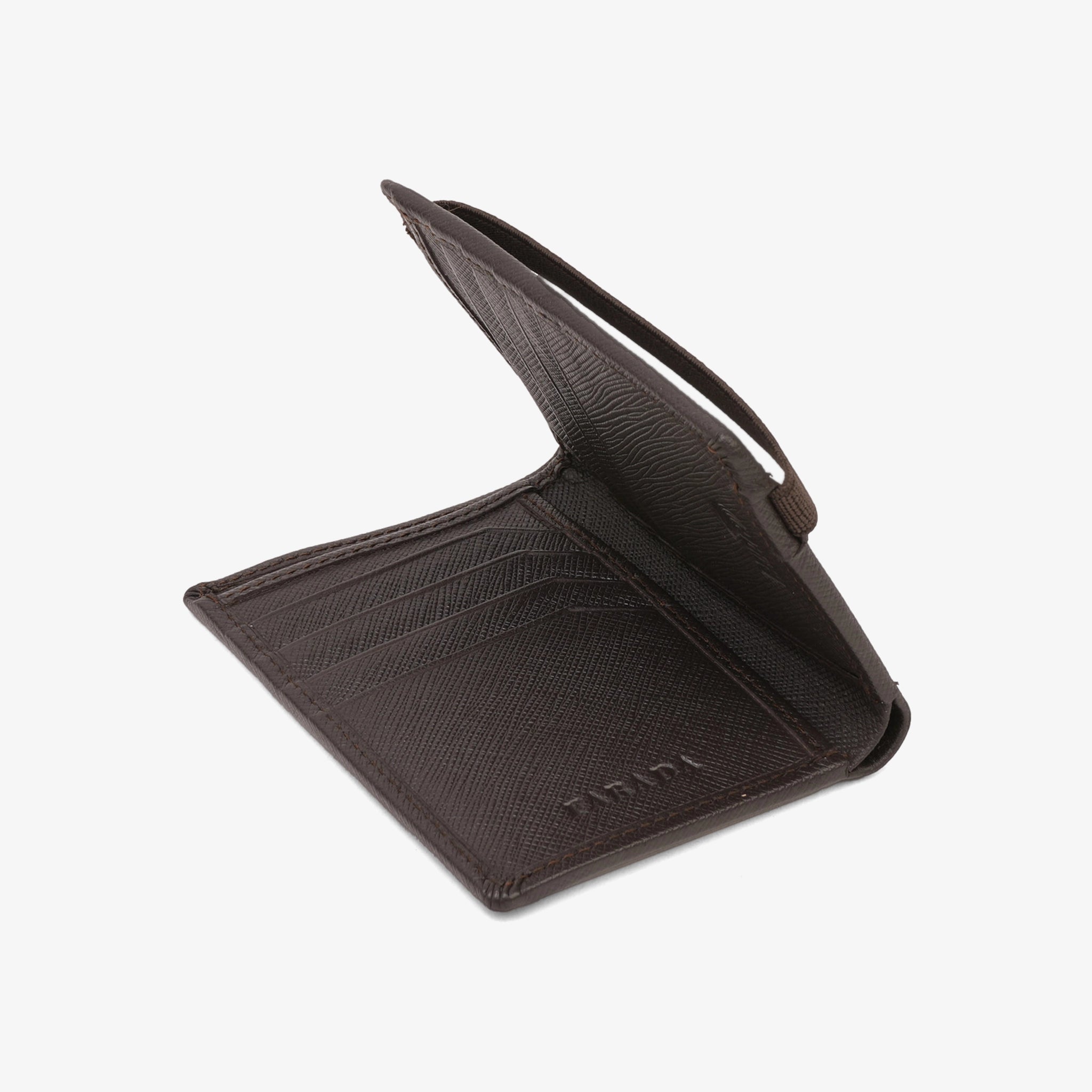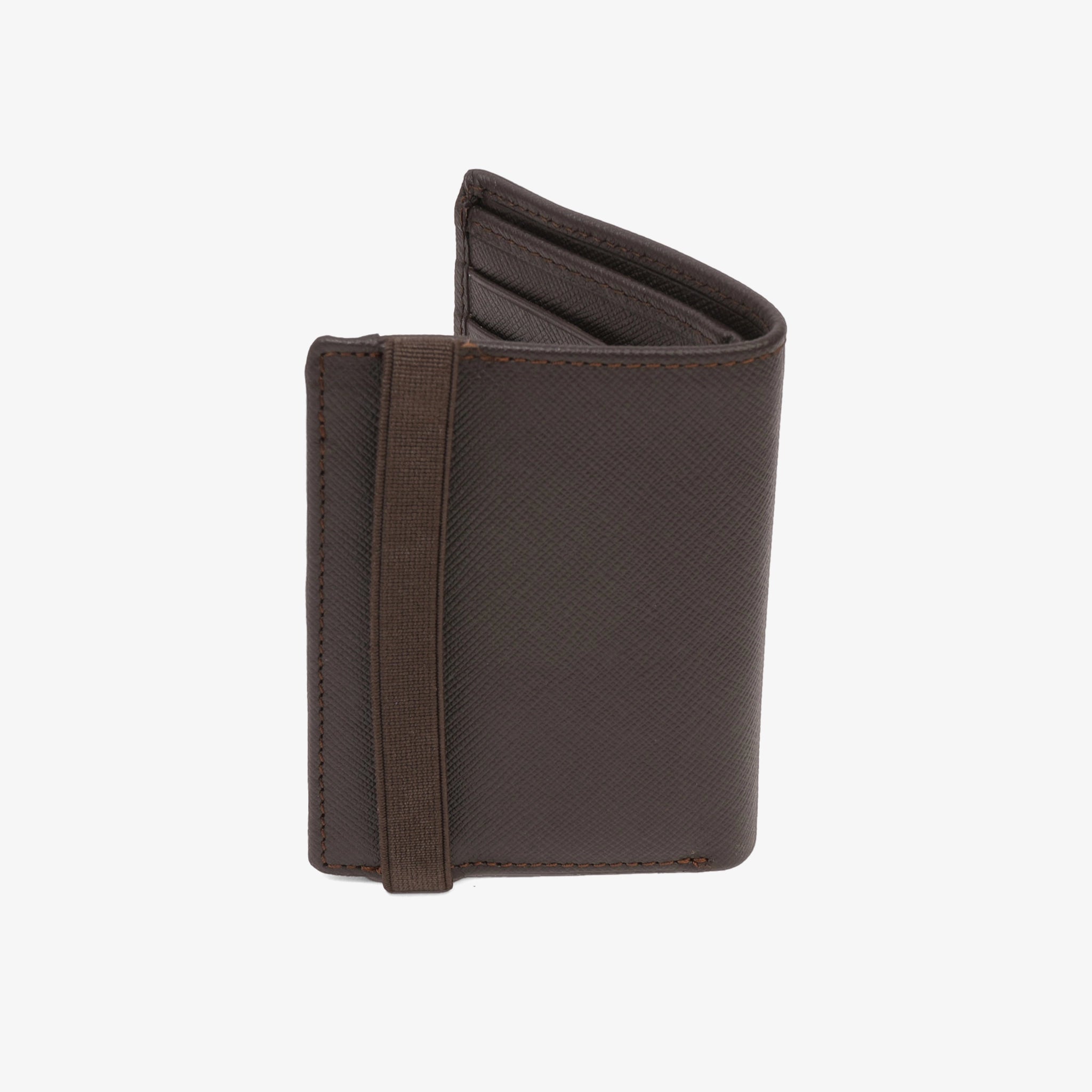 Elevate your everyday carry with the Farada Brown Wallet where elegance meets practicality. Crafted from premium textured leather, this wallet features a sleek silhouette secured by a durable elastic strap. The minimalist design is enhanced by a subtle Farada emblem, making it the perfect accessory for the modern gentleman.