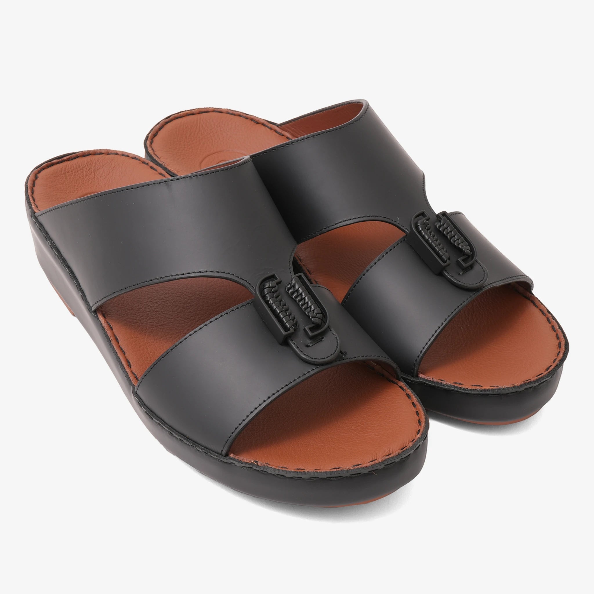 FARADA DESIGNER MEN'S LEATHER ARABIC SANDALS BUCKLE ACCENT BLACK