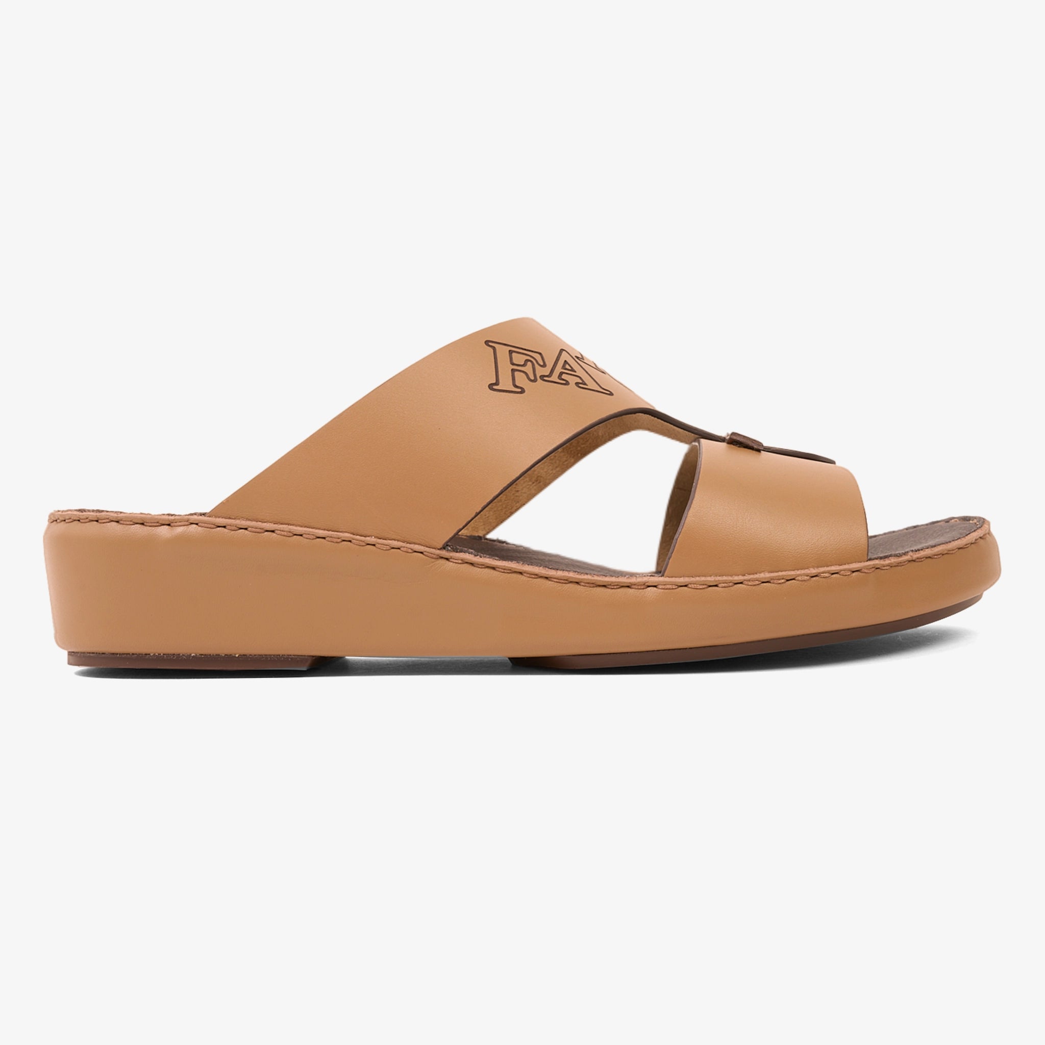 Step into contemporary style with the Farada Modern Leather Arabic Sandals. These sandals feature a sleek design with a bold embossed Farada logo, adding a touch of modern flair. The contrasting dark brown sole provides a stylish contrast, while the comfortable leather construction ensures all-day wearability. Perfect for everyday wear or special occasions, these sandals effortlessly blend style and comfort.