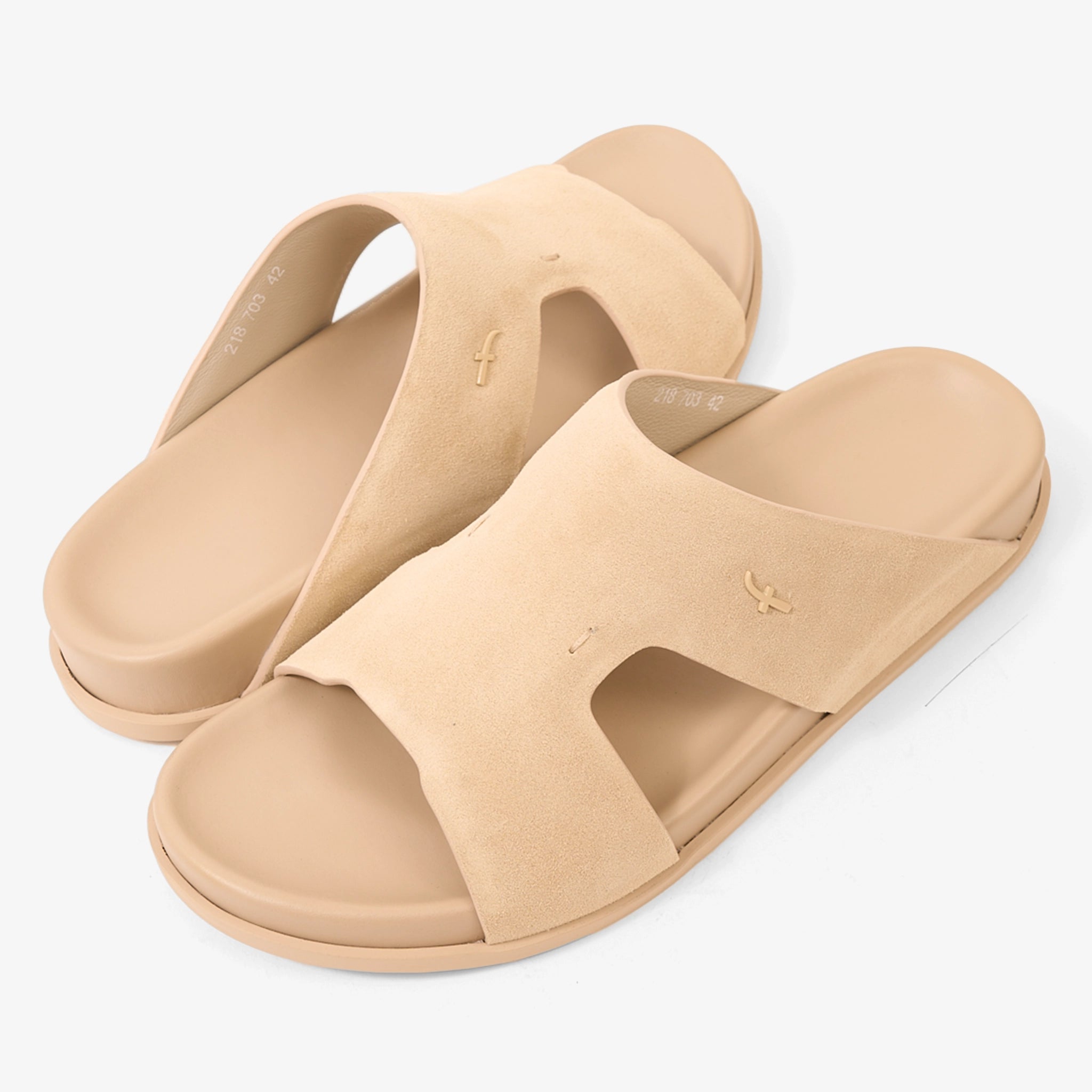 FARADA MODERN MINIMALIST SUEDE NEUTRAL TONE ARABIC SANDALS MASTICE