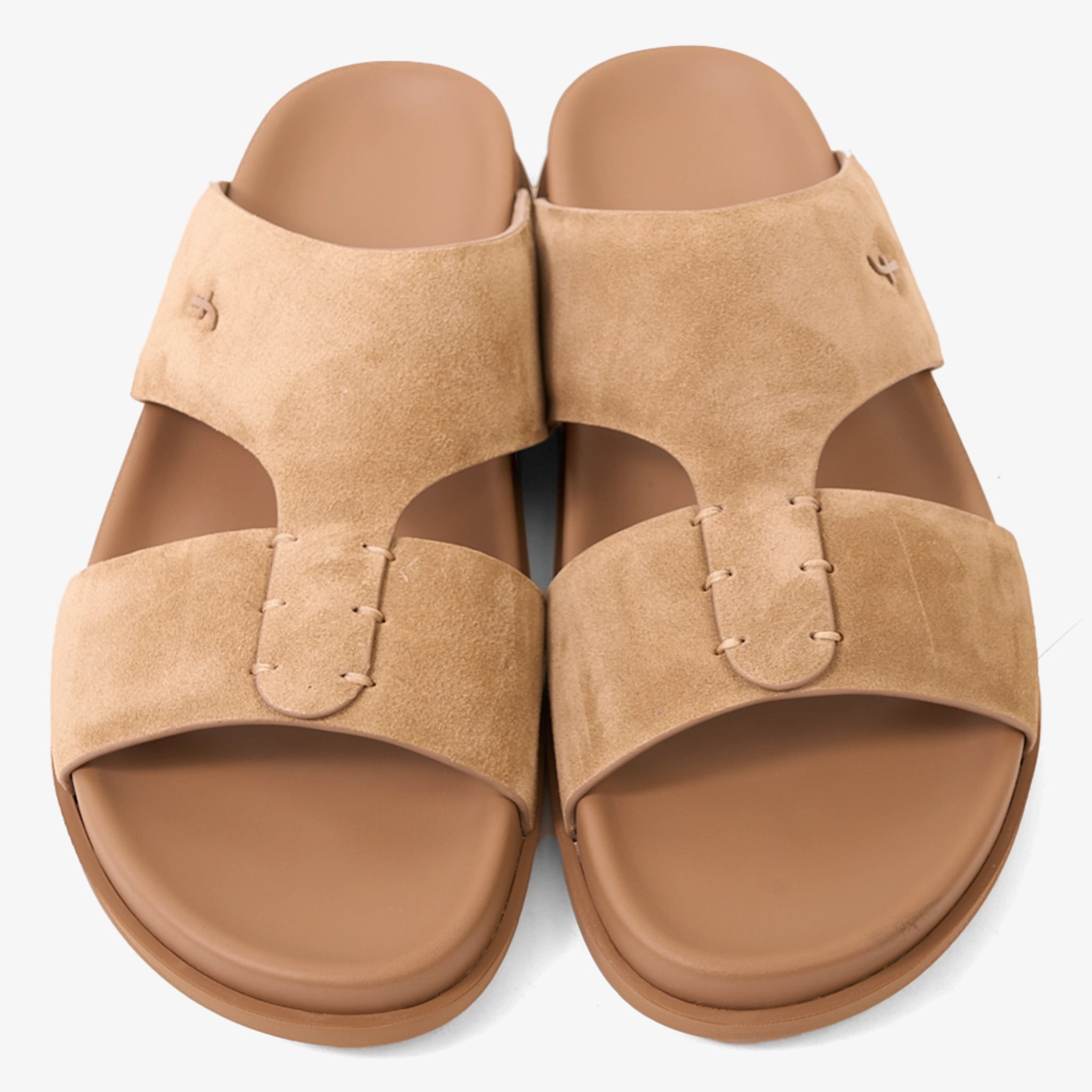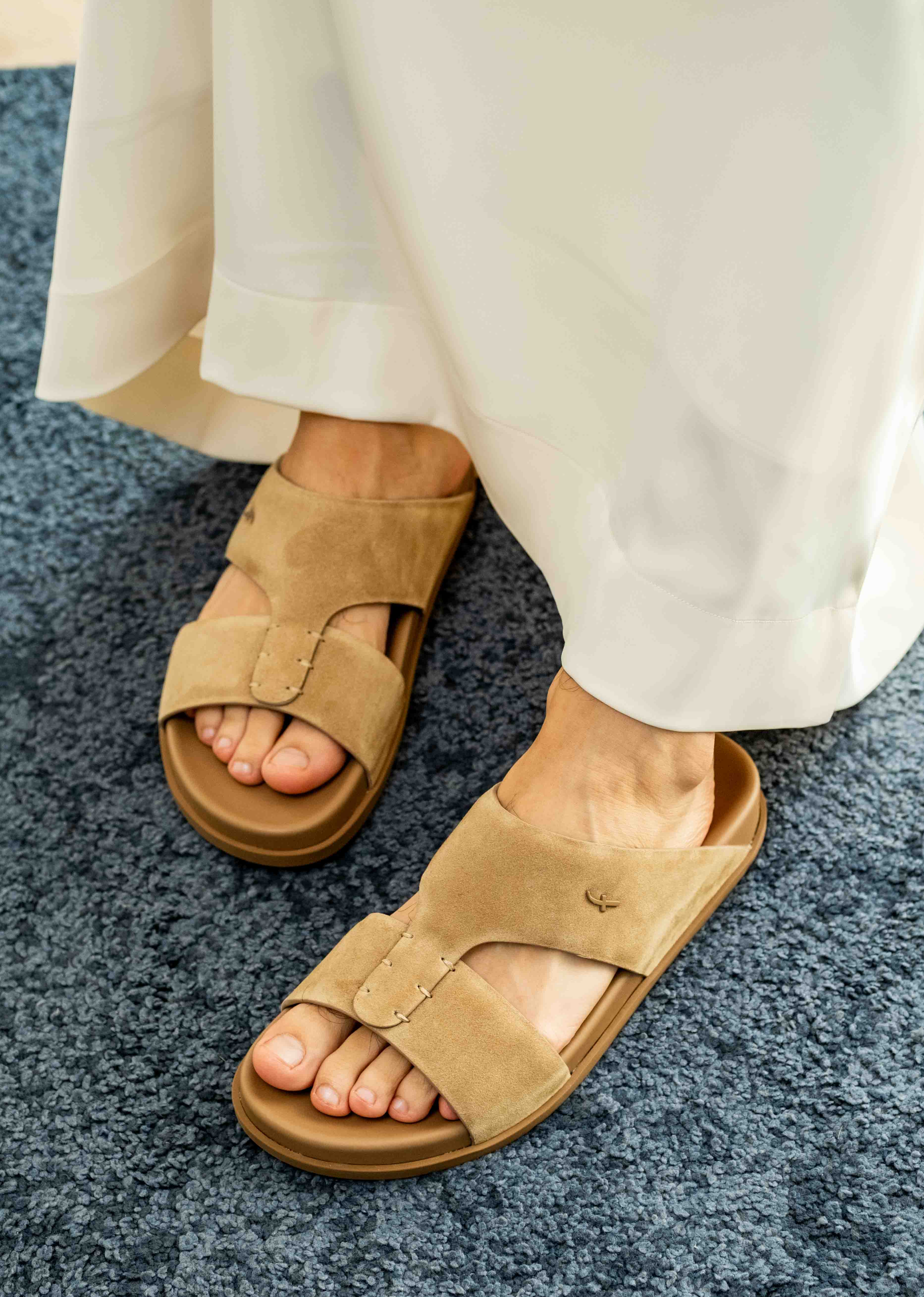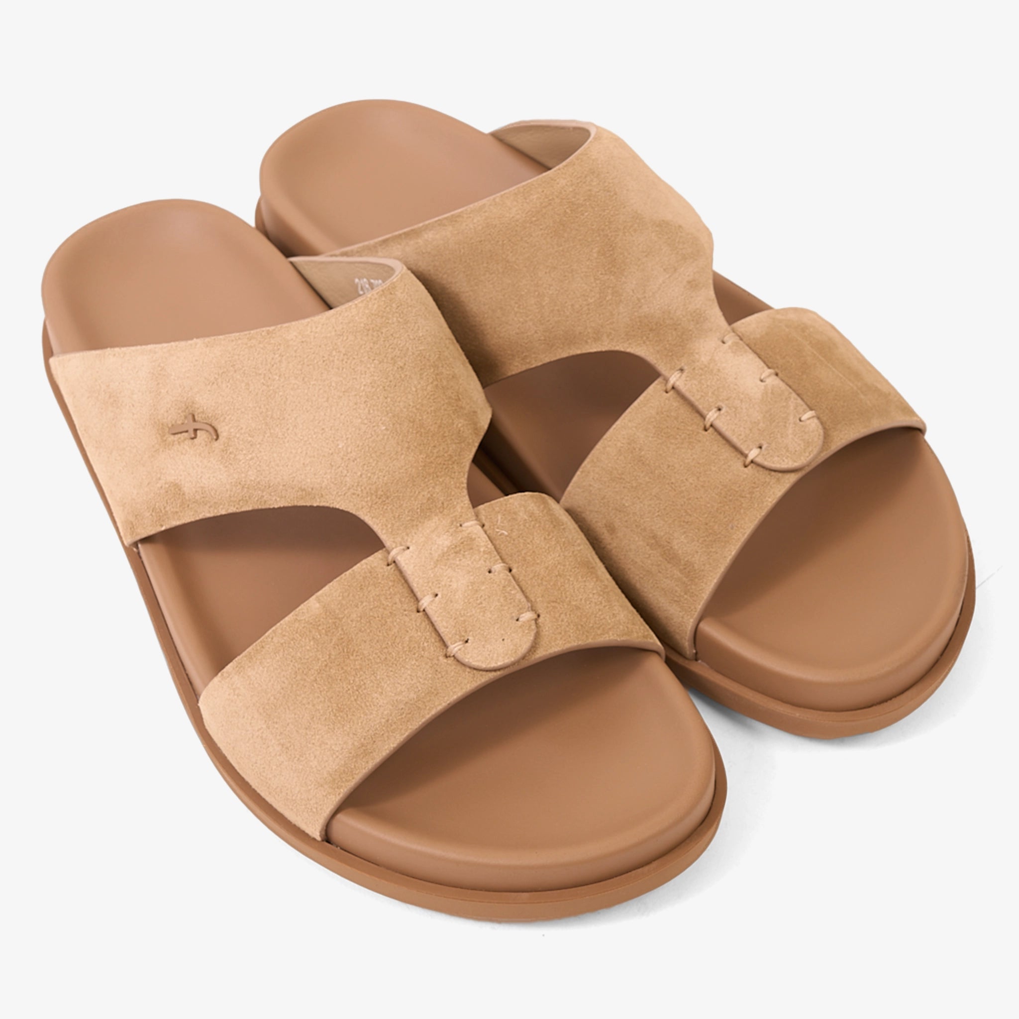 Experience contemporary style and exceptional comfort with these modern Arabic sandals. Crafted from soft neutral suede, they feature a clean, minimalist design that complements any outfit. The slip-on style ensures effortless wear, while the cushioned footbed provides all-day comfort. Perfect for everyday elegance, these sandals blend traditional inspiration with modern sophistication.