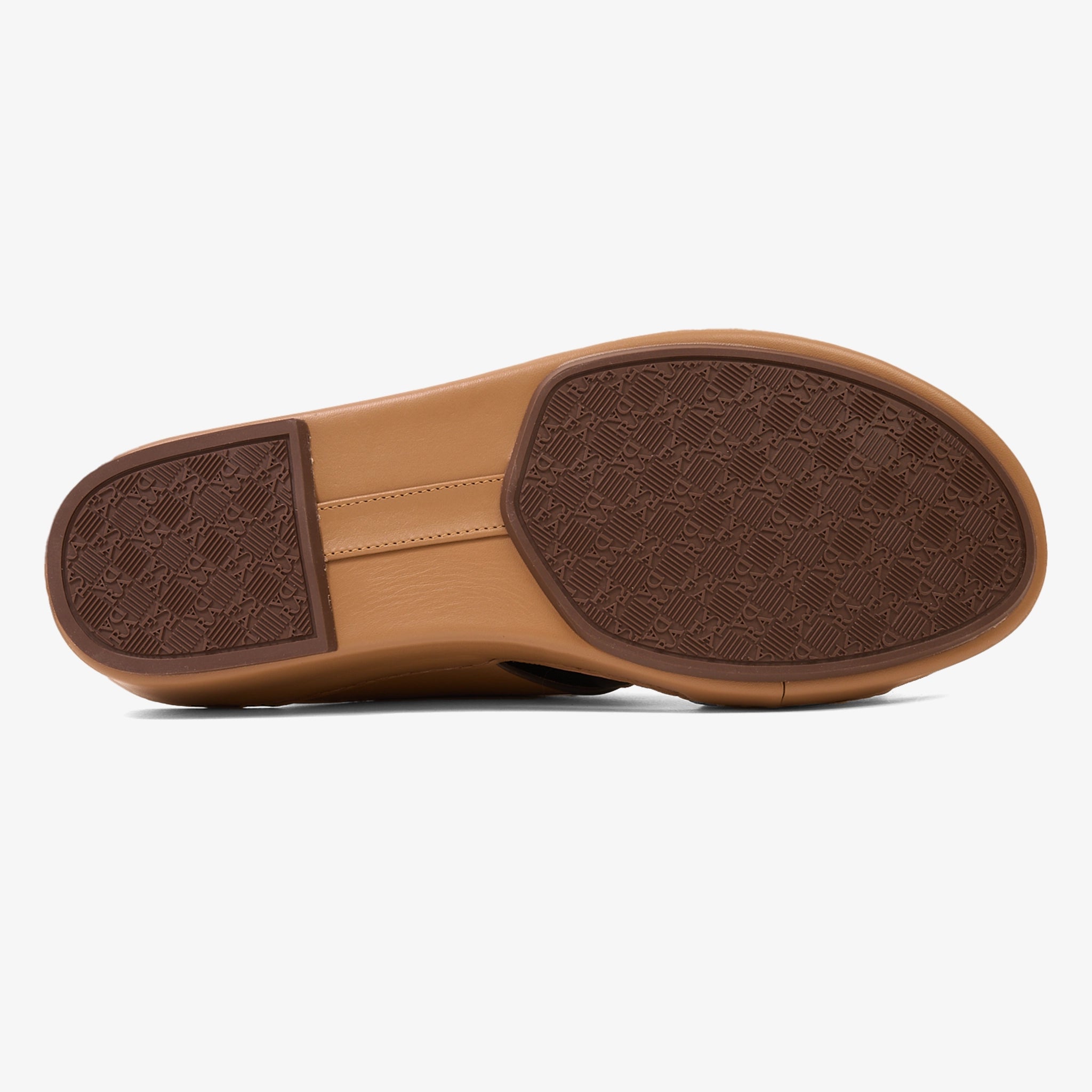 FARADA MODERN LEATHER SANDALS WITH EMBOSED LOGO CUOIO