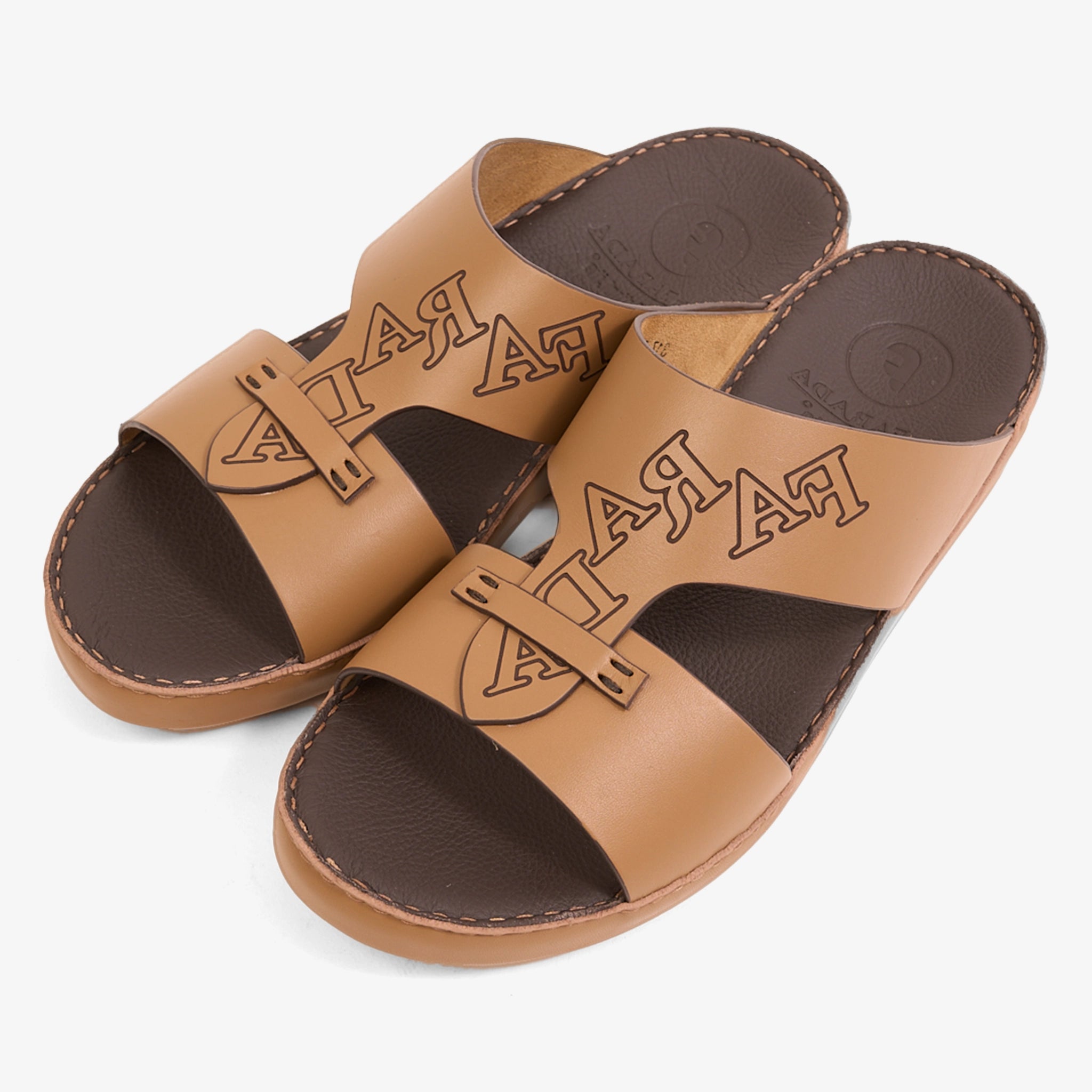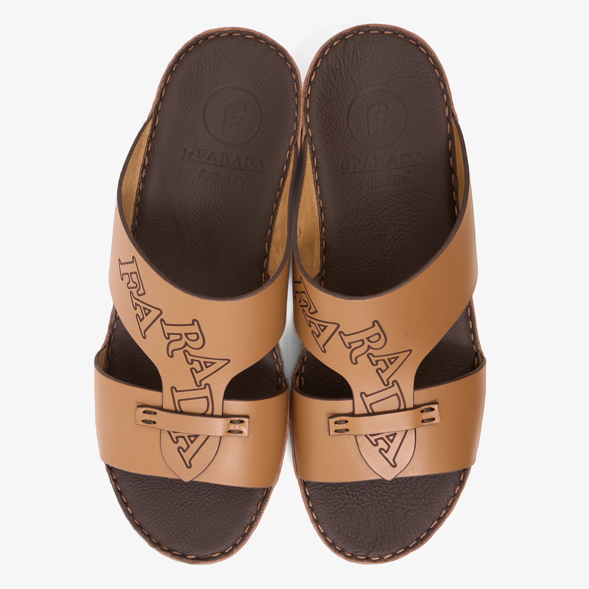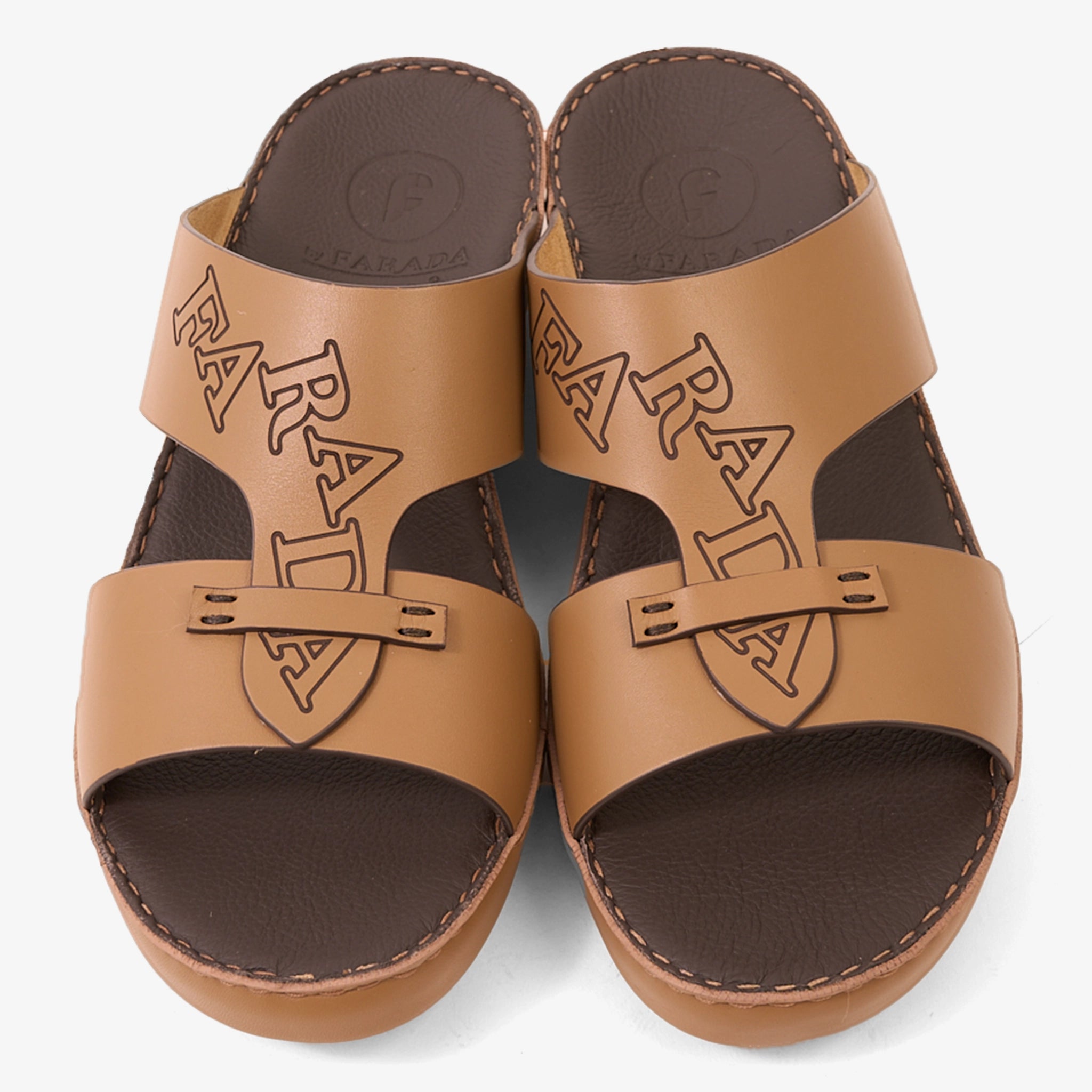 Step into contemporary style with the Farada Modern Leather Arabic Sandals. These sandals feature a sleek design with a bold embossed Farada logo, adding a touch of modern flair. The contrasting dark brown sole provides a stylish contrast, while the comfortable leather construction ensures all-day wearability. Perfect for everyday wear or special occasions, these sandals effortlessly blend style and comfort.