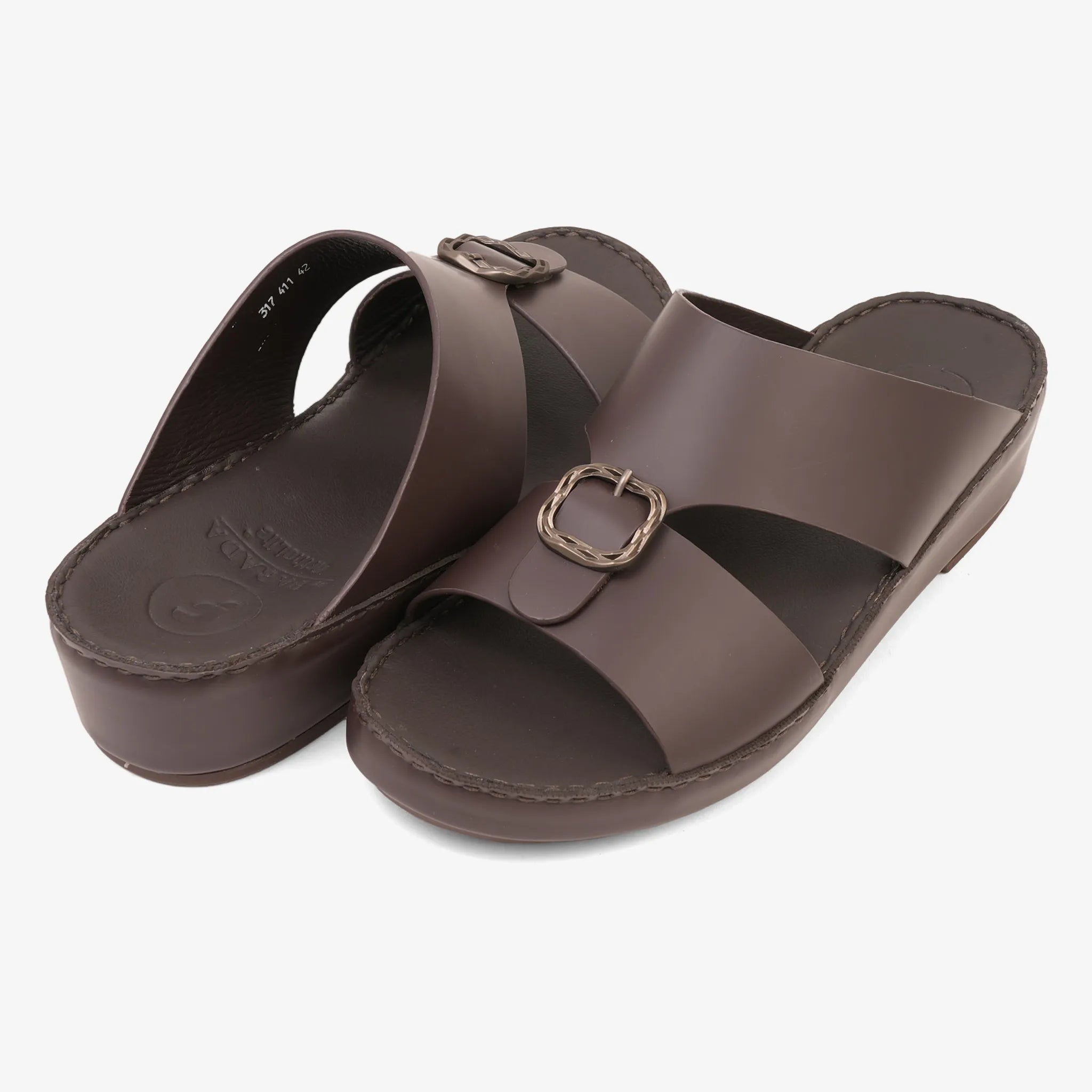 Discover the perfect blend of comfort and style with the Farada Ioconic Arabic Sandals. Made from high-quality leather, these sandals offer a soft and supportive fit for all-day wear. The distinctive brass double F buckle adds a touch of modern flair, while the traditional design ensures timeless appeal. Elevate your footwear collection with these meticulously crafted Arabic sandals from Farada.